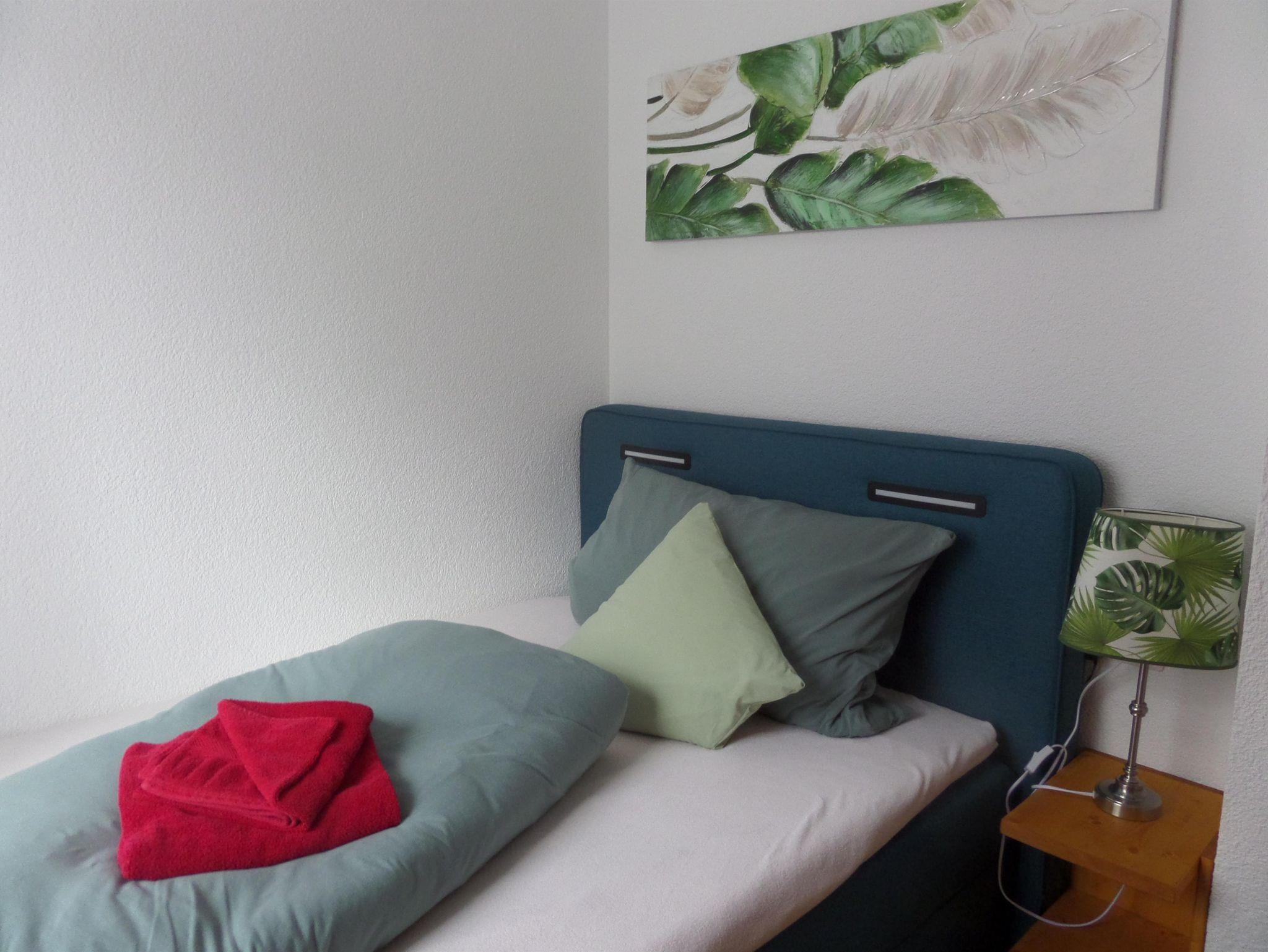 Das Appartement ist ideal für Familien. Es besteht aus einem Vorraum, Dusche und WC sind getrennt, einem Schlafzimmer mit Doppelbett und einem weiteren kleinem Schlafzimmer für die Kinder mit einem Bett in der Größe von 140 x 200 cm.