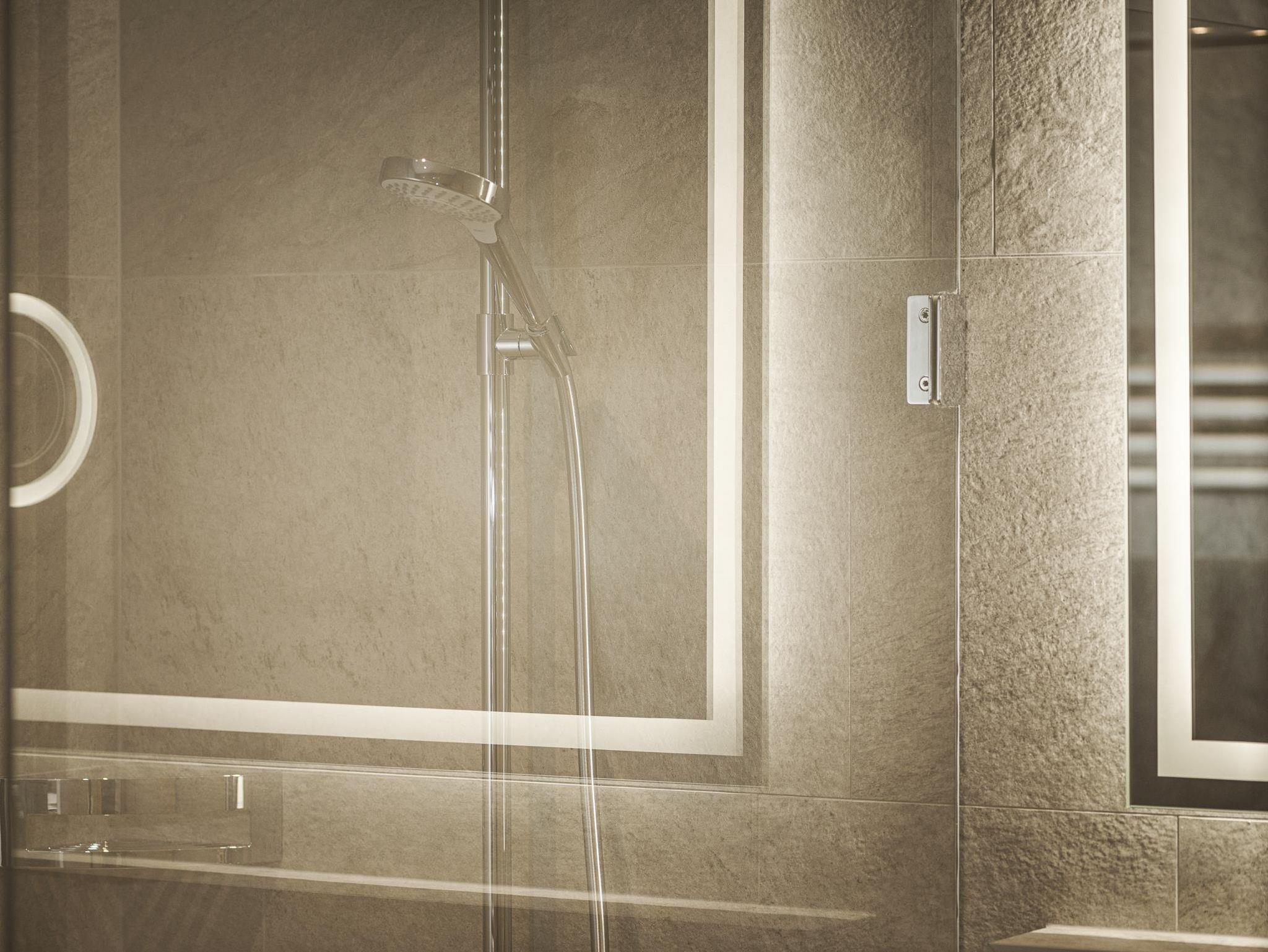 • Badezimmer mit Dusche, teils separates WC