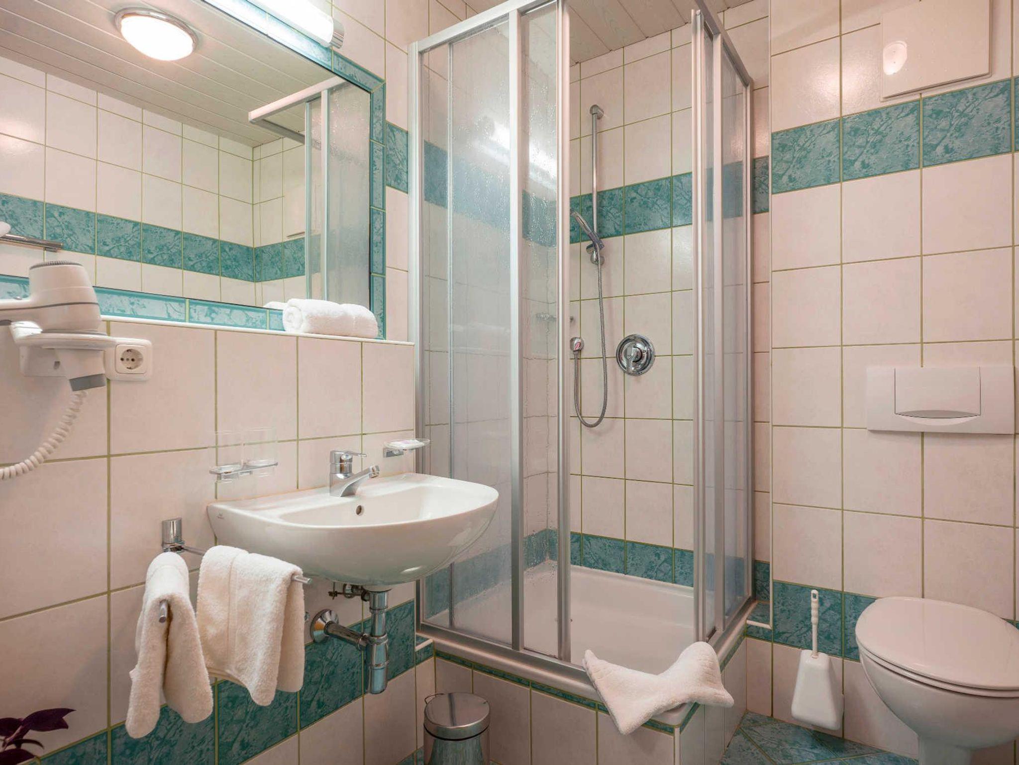 • Badezimmer mit Dusche, teils separates WC
