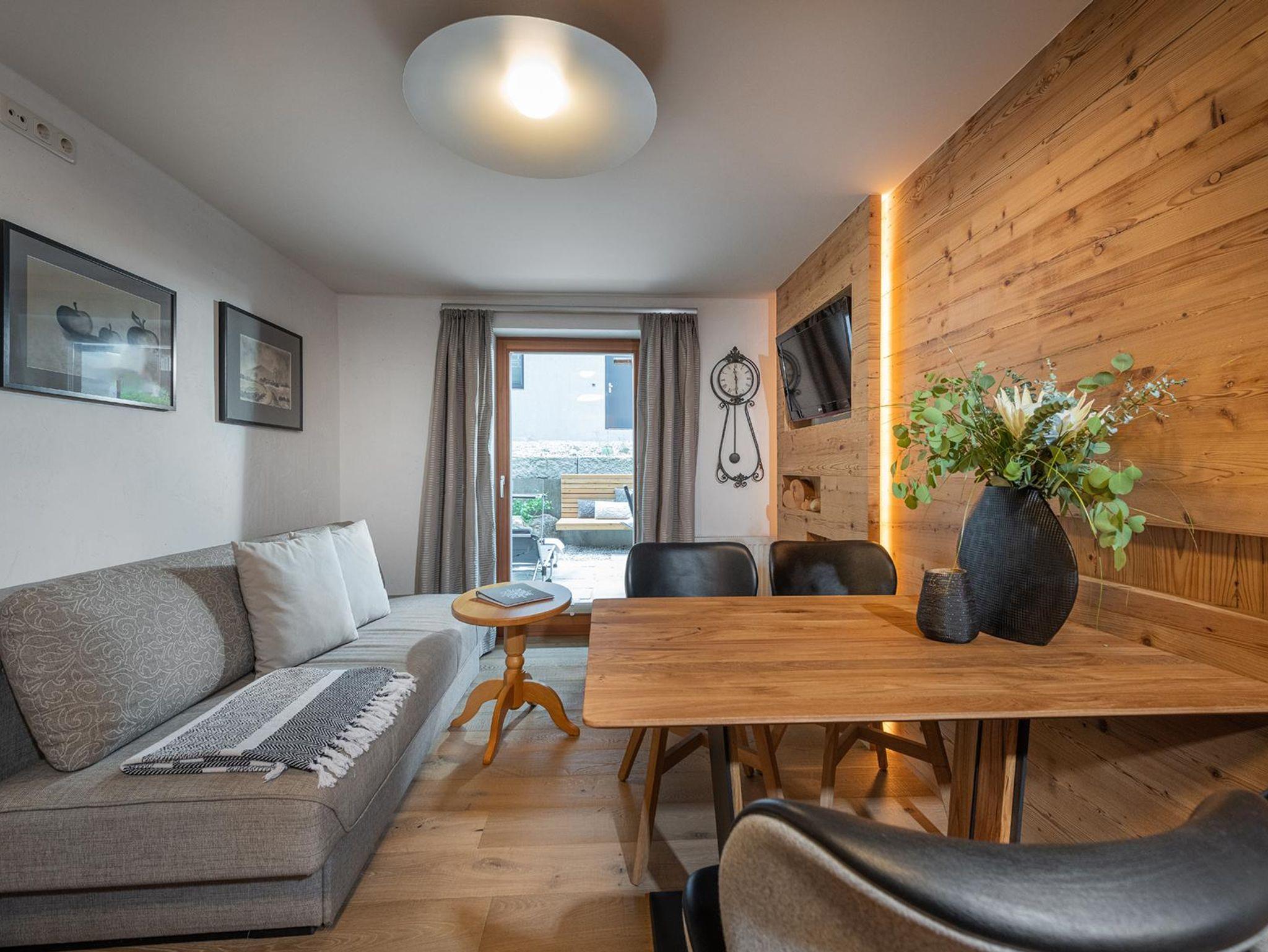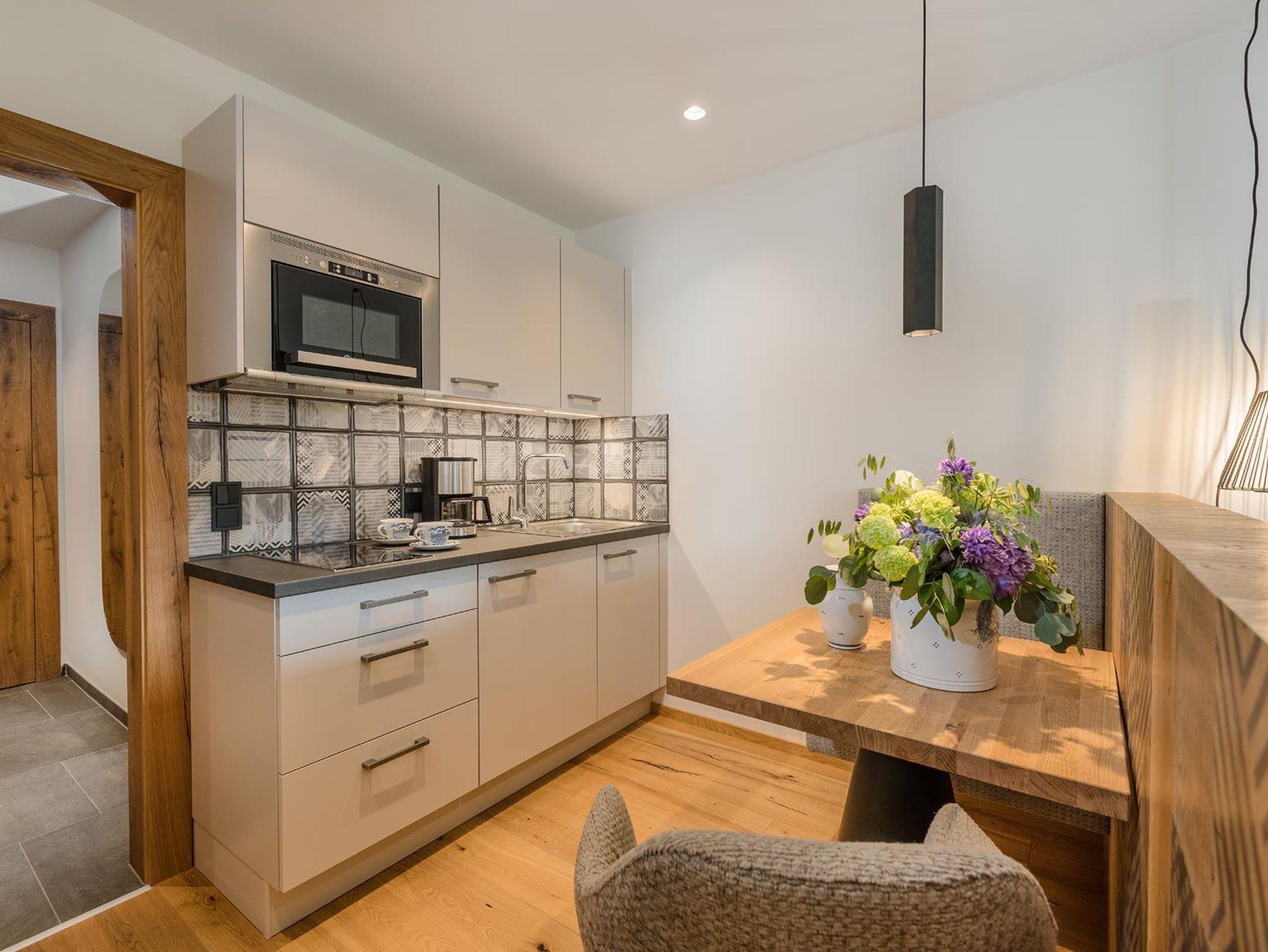 • gemütliche Wohnküche mit Wohn- und Essecke, komplett ausgestattete Küche mit 4-Platten-Cerankochfeld, Mikrowelle, Backofen, Kühlschrank mit Gefrierfach, Filterkaffeemaschine (auf Wunsch Nespresso verfügbar), Toaster, Wasserkocher, Geschirr, Besteck und Kochutensilien