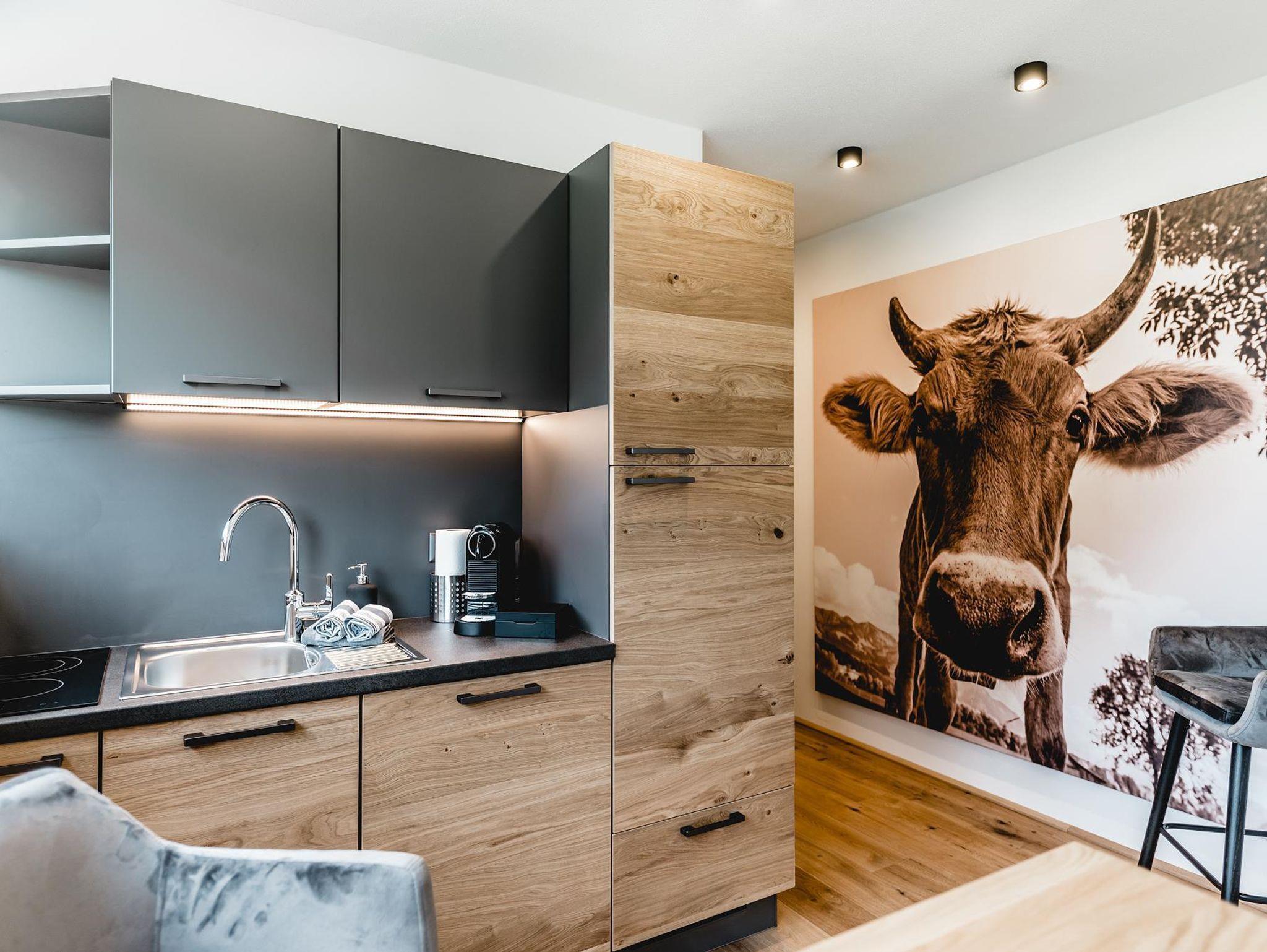 Beim Designkonzept der Apartments lag besonderes Augenmerk auf Gemütlichkeit und Wohnkomfort. Warme Farbtöne und natürliche Materialien verleihen dem Cabin8 das moderne und alpine Flair. Wir freuen uns Sie bei uns begrüßen zu dürfen!