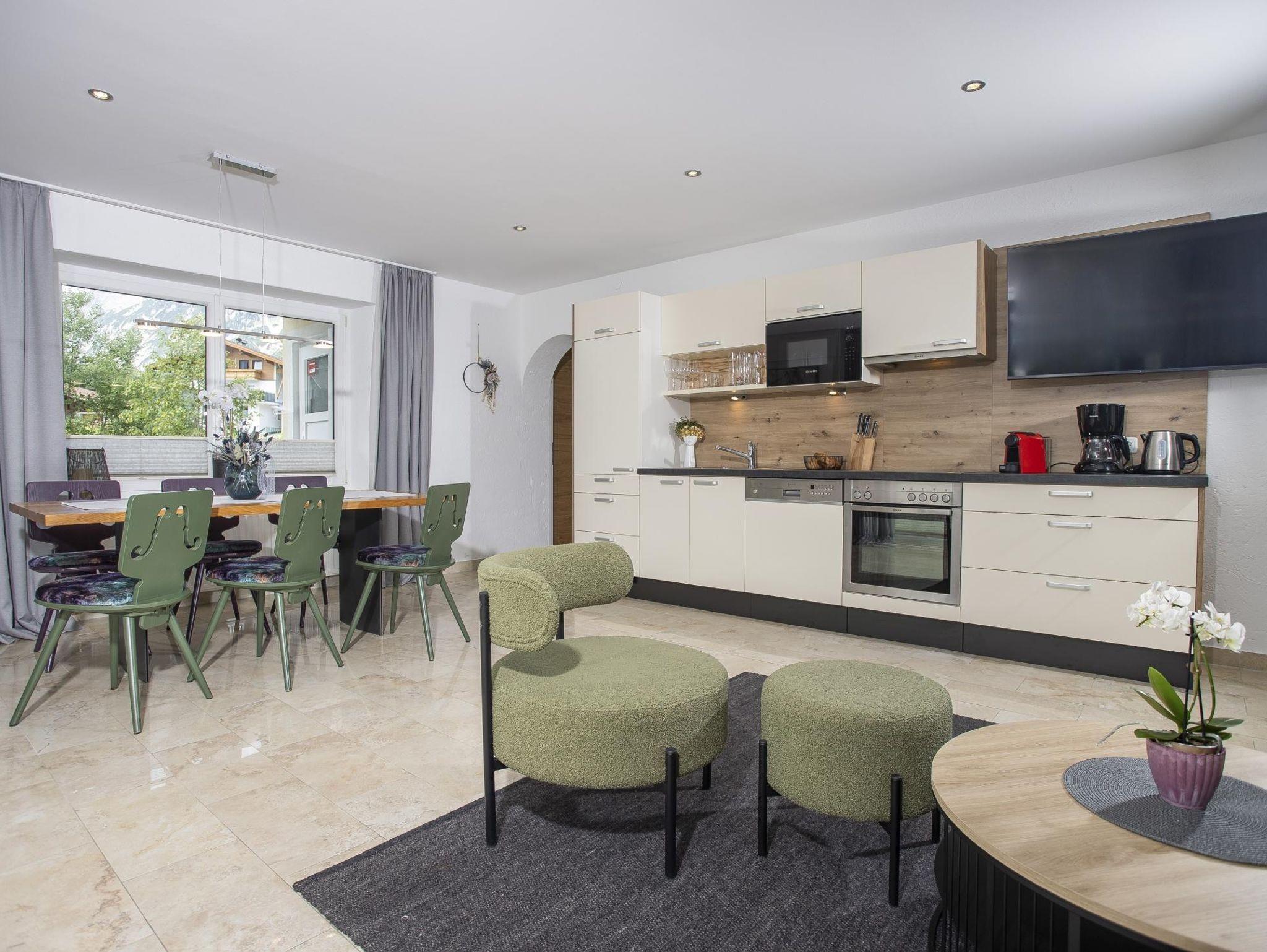 Das Lifestyle Apartment Sonnjoch wurde mit wertvollen Naturmaterialien, heimischen Hölzern, teilweise Parkettböden in den Schlafzimmern, edler hochmoderner Küche und Sonnenterrasse mit herrlichem Blick auf das Bergpanorama. Wahre Wohnwonne für bis zu vier Personen. Die Highlights der Wohnung sind: