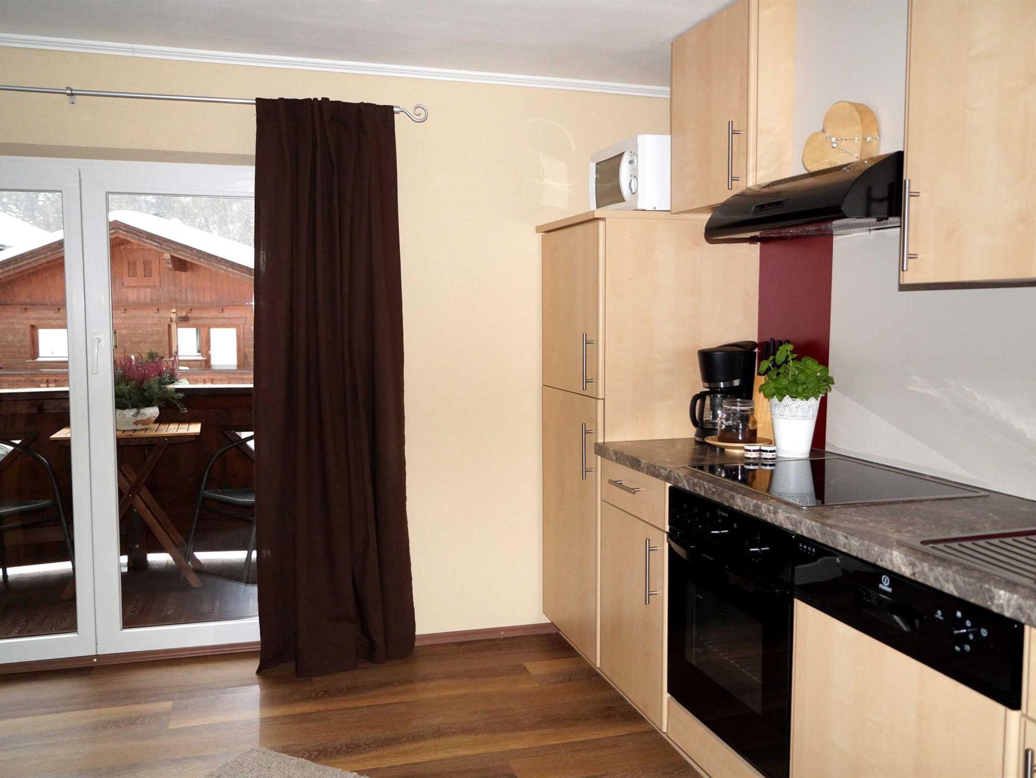 Zu jedem 45m² bzw. 80m² großen Appartement oder dem 90m² Ferienhaus zur Alleinbenützung gehört eine komfortable Wohnküche mit Geschirrspüler und ausziehbarer Couch, 1 bzw. 2 Schlafzimmer, Wohnraum, 1 oder 2 Bäder mit großer Glasdusche, 2 WC, Vorraum, Sat-TV und eine komplette Geschirr- und Wäscheausstattung. Weiters verfügt jedes Appartement über eine sonnige Terrasse mit Sitzecke, eigenem Garten und freiem Blick auf das Karwendelgebirge.