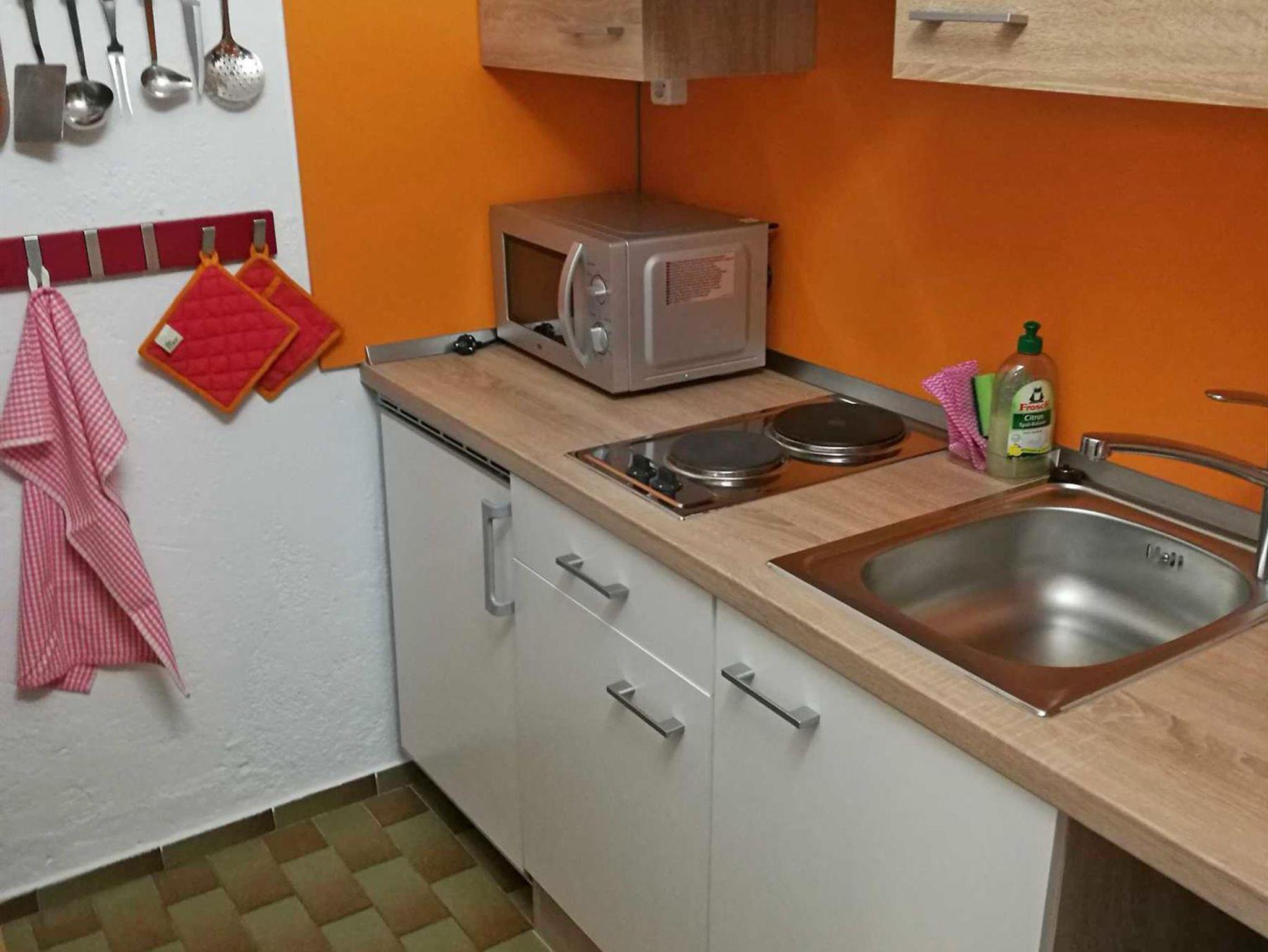 Die Ferienwohnung 2 ist ausgestattet mit einem Wohnzimmer mit Kochnische, Schlafzimmer, Badezimmer mit Dusche und WC und einem Balkon.