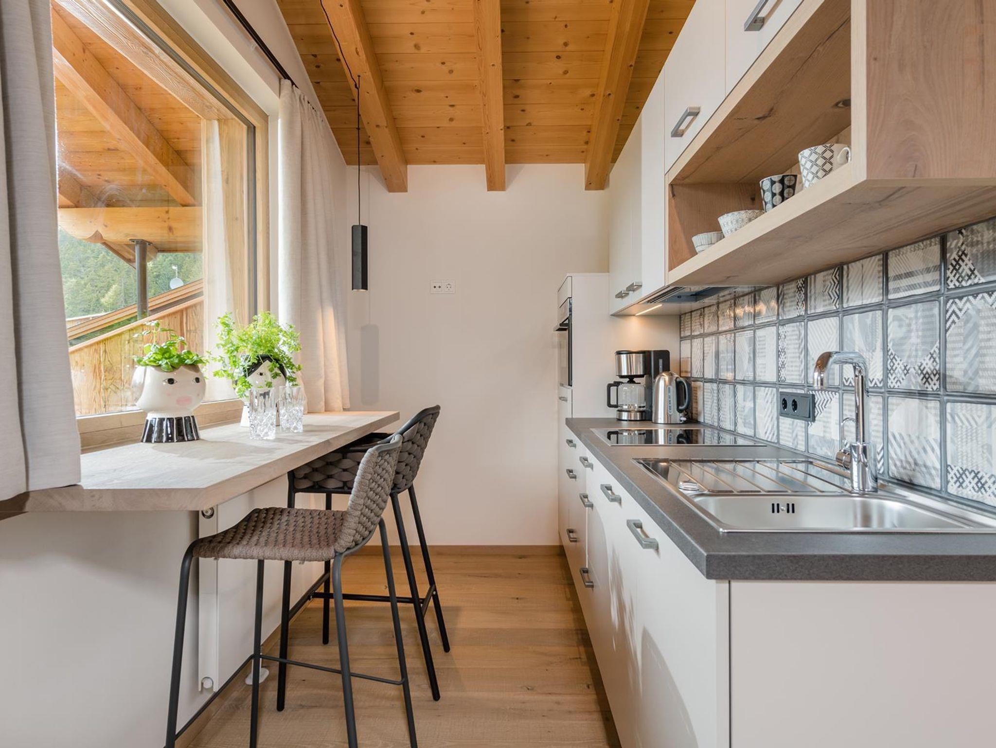 • gemütliche Wohnküche mit Wohn- und Essecke, komplett ausgestattete Küche mit 4-Platten-Cerankochfeld, Mikrowelle, Backofen, Kühlschrank mit Gefrierfach, Filterkaffeemaschine (auf Wunsch Nespresso verfügbar), Toaster, Wasserkocher, Geschirr, Besteck und Kochutensilien