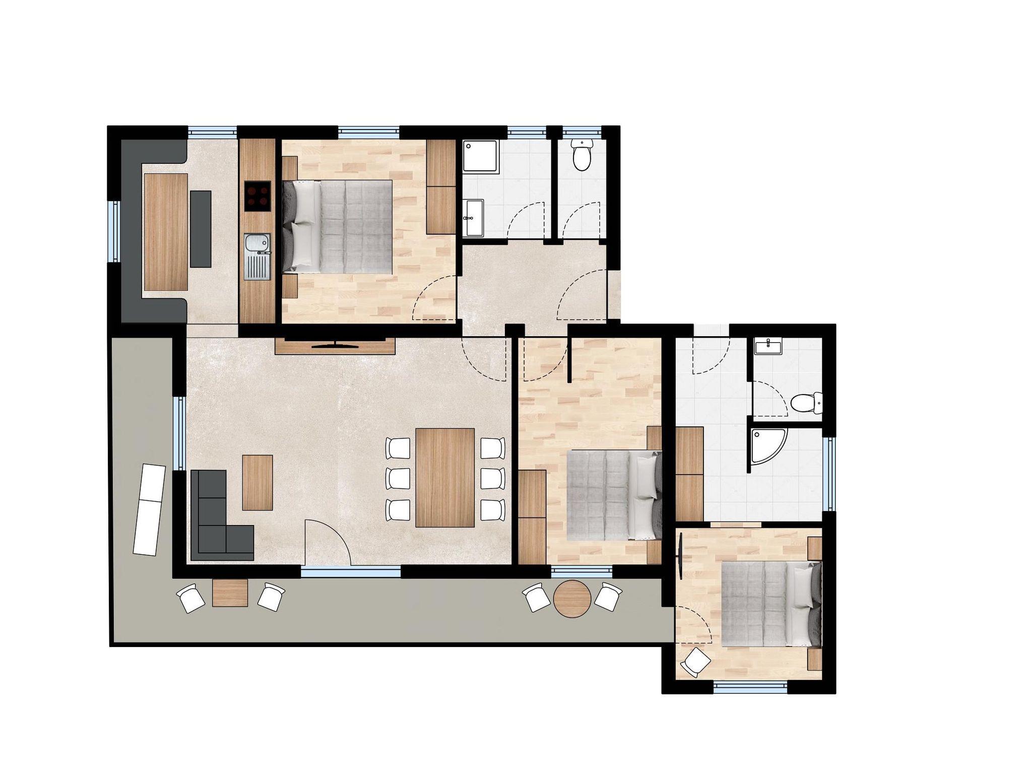 • großer Sonnenbalkon mit Möbel