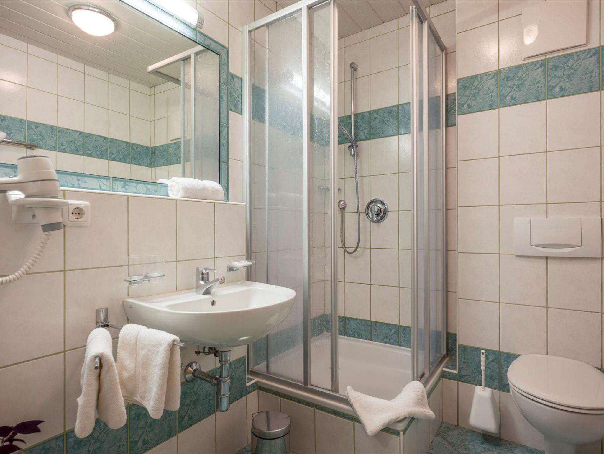 • Badezimmer mit Dusche, teils separates WC