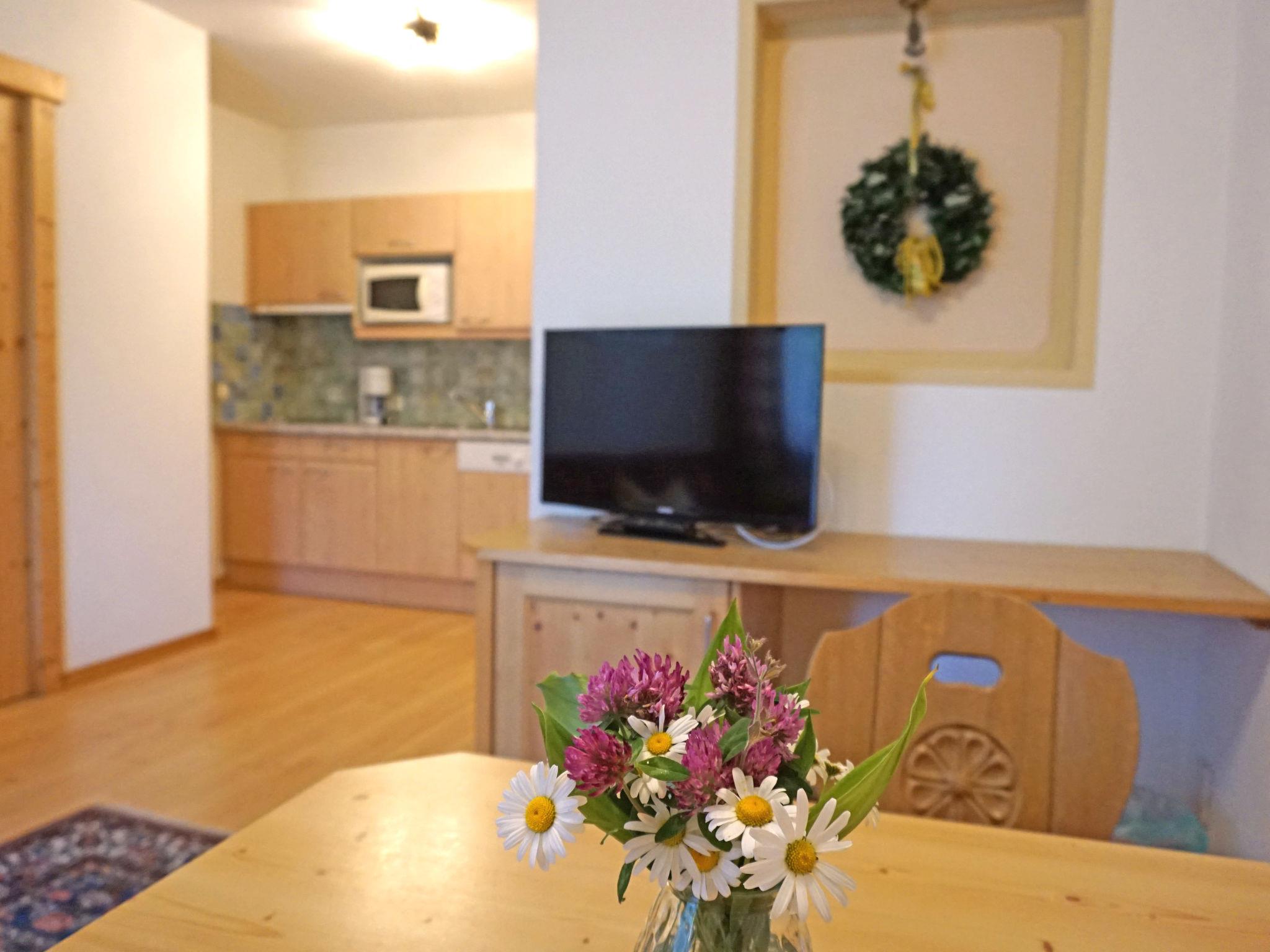 2-Zimmer-Wohnung 31 m2 im 1. Stock. Komfortabel und geschmackvoll eingerichtet: 1 Doppelzimmer. Wohn-/Esszimmer mit 1 Doppeldiwanbett, Essecke und Sat-TV. Ausgang zum Balkon. Kochnische (Geschirrspüler, 2 Glaskeramikplatten, Mikrowelle, elektrische Kaffeemaschine). Dusche/WC. Balkon. Terrassenmöbel. Schöne Sicht auf die Berge. Zur Verfügung: Internet (WLAN, gratis). Bitte beachten: Rauchmelder.
