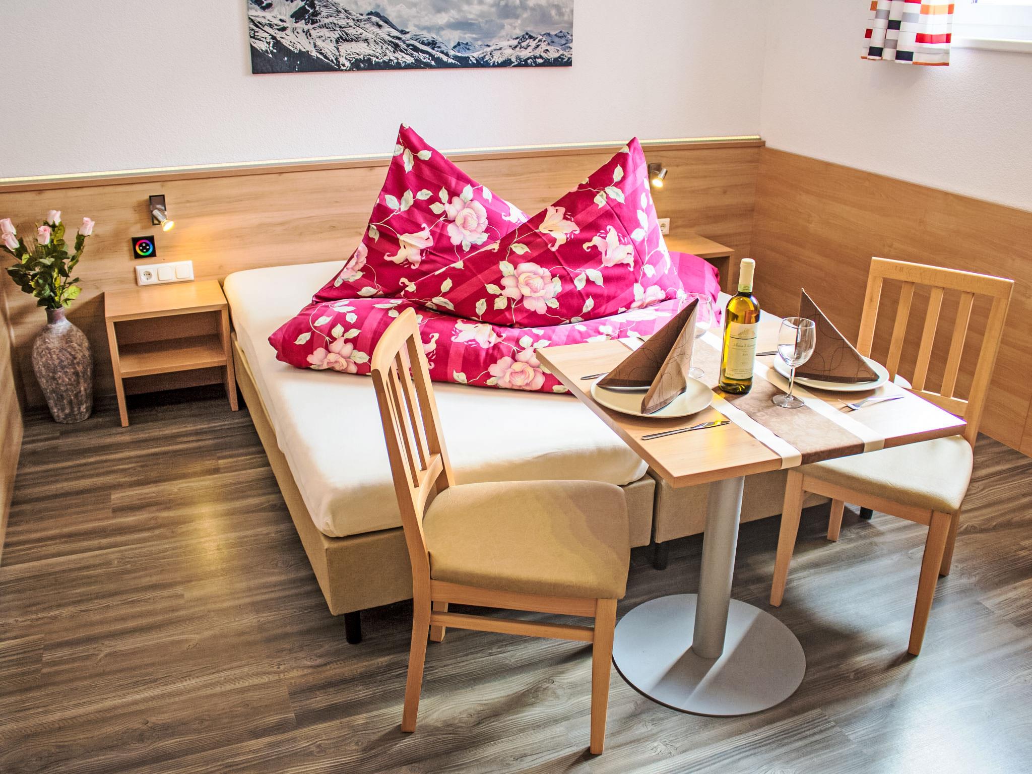 1-Zimmer-Wohnung 20 m2, unteres Geschoss. Gemütlich eingerichtet: Wohn-/Schlafzimmer mit 1 Doppelbett, Esstisch und Kabel-TV (Flachbildschirm). Kochnische (2 Glaskeramikplatten, Toaster, Wasserkocher, Mikrowelle, elektrische Kaffeemaschine). Dusche/WC. Zur Verfügung: Internet (Wireless LAN, gratis). Parkplatz (1 Auto) beim Haus. Bitte beachten: Nichtraucher-Unterkunft. Aus dem Doppelbett können auch 2 Einzelbetten gemacht werden.