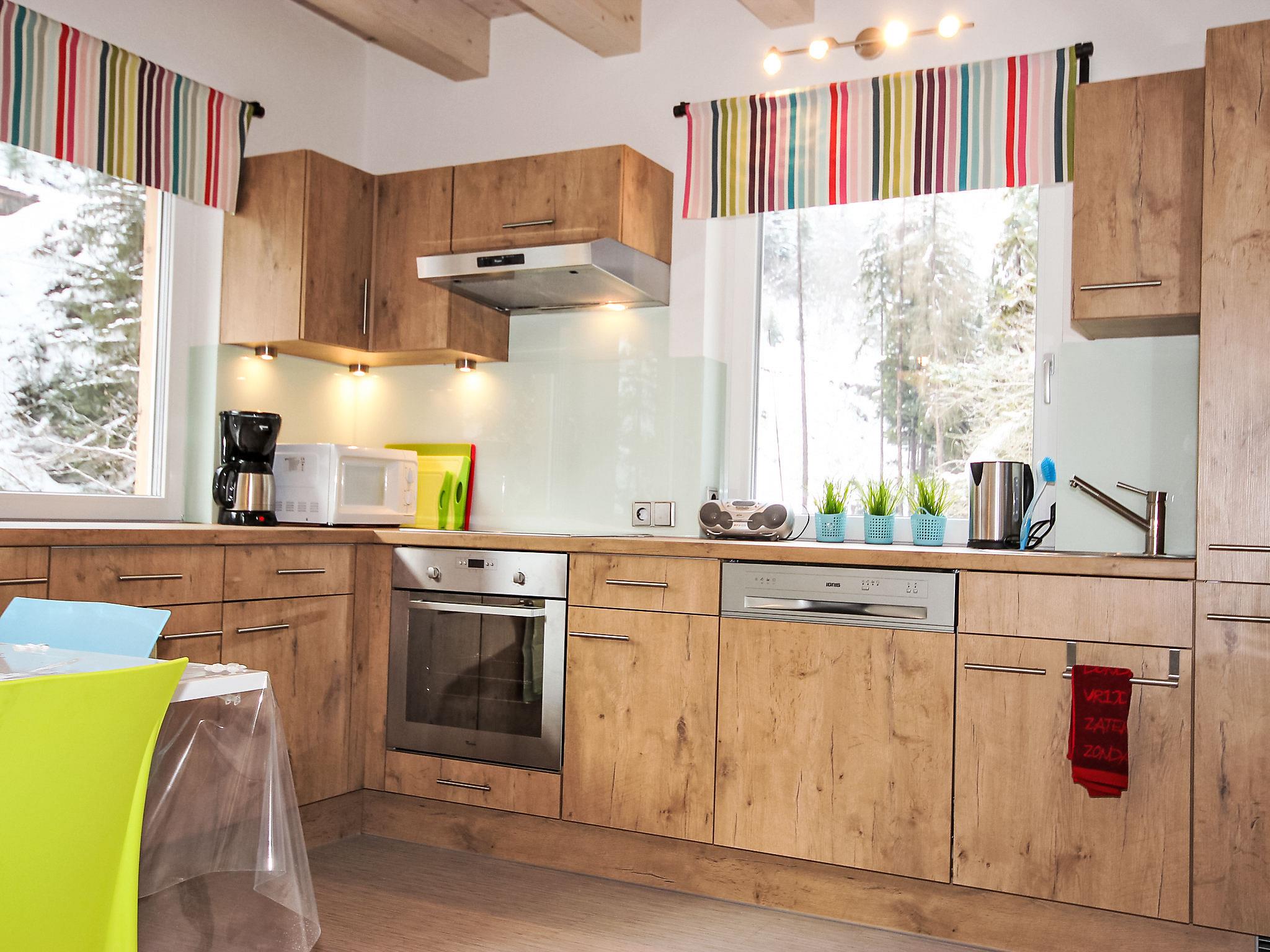 4-Zimmer-Chalet 85 m2. Gemütlich und mit viel Holz eingerichtet: 1 kleines Doppelzimmer mit 1 Ausziehbett (2 Pers.), Sat-TV (Flachbildschirm). Wohnküche (Backofen, Geschirrspüler, 4 Induktionskochplatten, Mikrowelle, elektrische Kaffeemaschine) mit Essecke. Bad/WC. Obergeschoss: 1 Zimmer mit 1 x 2 Etagenbetten, 1 Doppelbett und Sat-TV (Flachbildschirm). 1 Doppelzimmer. Dusche/WC. Bodenheizung. Kleiner Balkon, Terrasse. Terrassenmöbel, Gartengrill. Zur Verfügung: Haartrockner. Internet (Wireless LAN, gratis). Bitte beachten: Nichtraucher-Unterkunft. Rauchmelder.