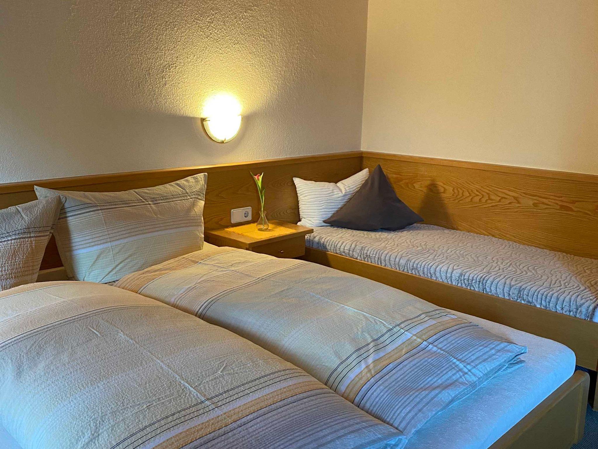 Unser Haus befindet sich in sehr ruhigen doch zentralen Lage. Wir bieten Ihnen 3 gemütlich und modern eingerichtete Ferienwohnungen und wir sind für unseren Komfort mit 4 Edelweiß ausgezeichnet. In der großen Wohnungapart Frudger, für 4-5 Personen, sind 2 getrennte Schlafzimmer mit jeweils DU/WC und Wohnküche.