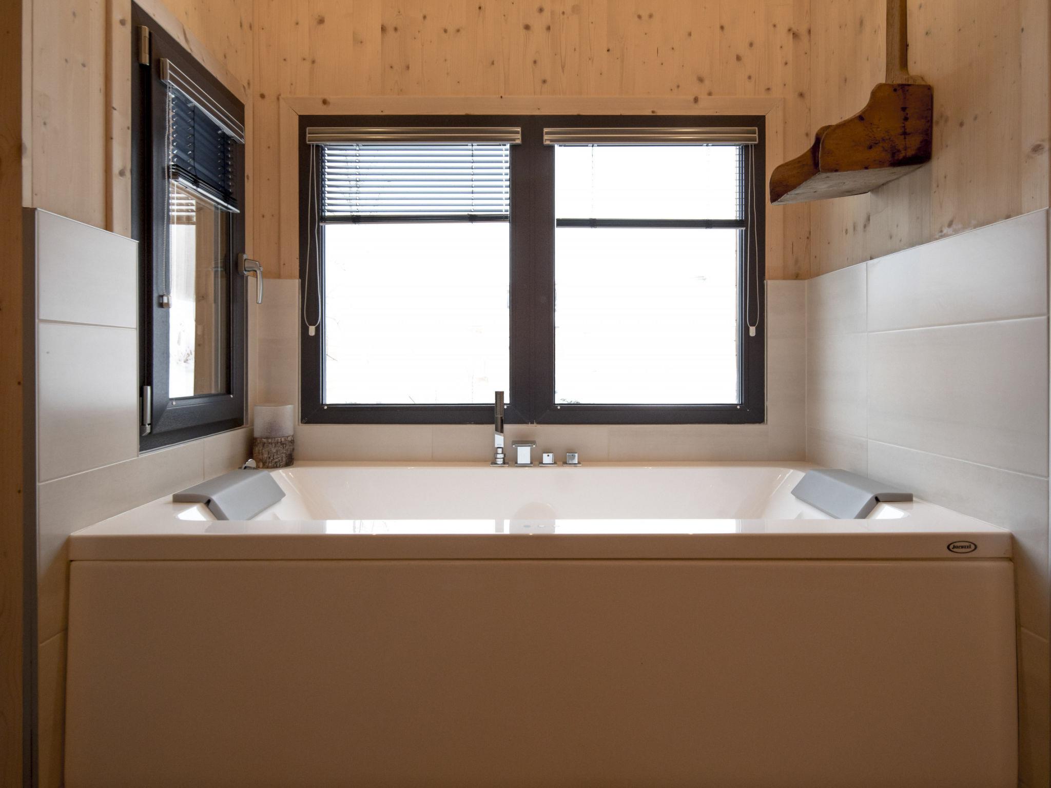 "Superior 13 Sauna&Sprudelwanne innen", 5-Zimmer-Chalet 120 m2. Komfortabel und geschmackvoll eingerichtet: Wohn-/Esszimmer mit Essecke und Sat-TV (Flachbildschirm). 3 Doppelzimmer, jedes Zimmer mit Sat-TV (Flachbildschirm). 1 Zimmer mit 2 x 2 Etagenbetten, Sat-TV (Flachbildschirm). Offene Küche (Backofen, Geschirrspüler, 4 Glaskeramikplatten, Toaster, Wasserkocher, Mikrowelle, elektrische Kaffeemaschine). Bad/WC, 4 Duschen/WC, 4 sep. WC's, Whirlbadewanne, Sauna. Balkon Terrasse 20 m2. Terrassenmöbel. Sehr schöne Sicht auf die Berge. Zur Verfügung: Haartrockner. Internet (Wireless LAN, gratis). Bitte beachten: Nichtraucher-Unterkunft.