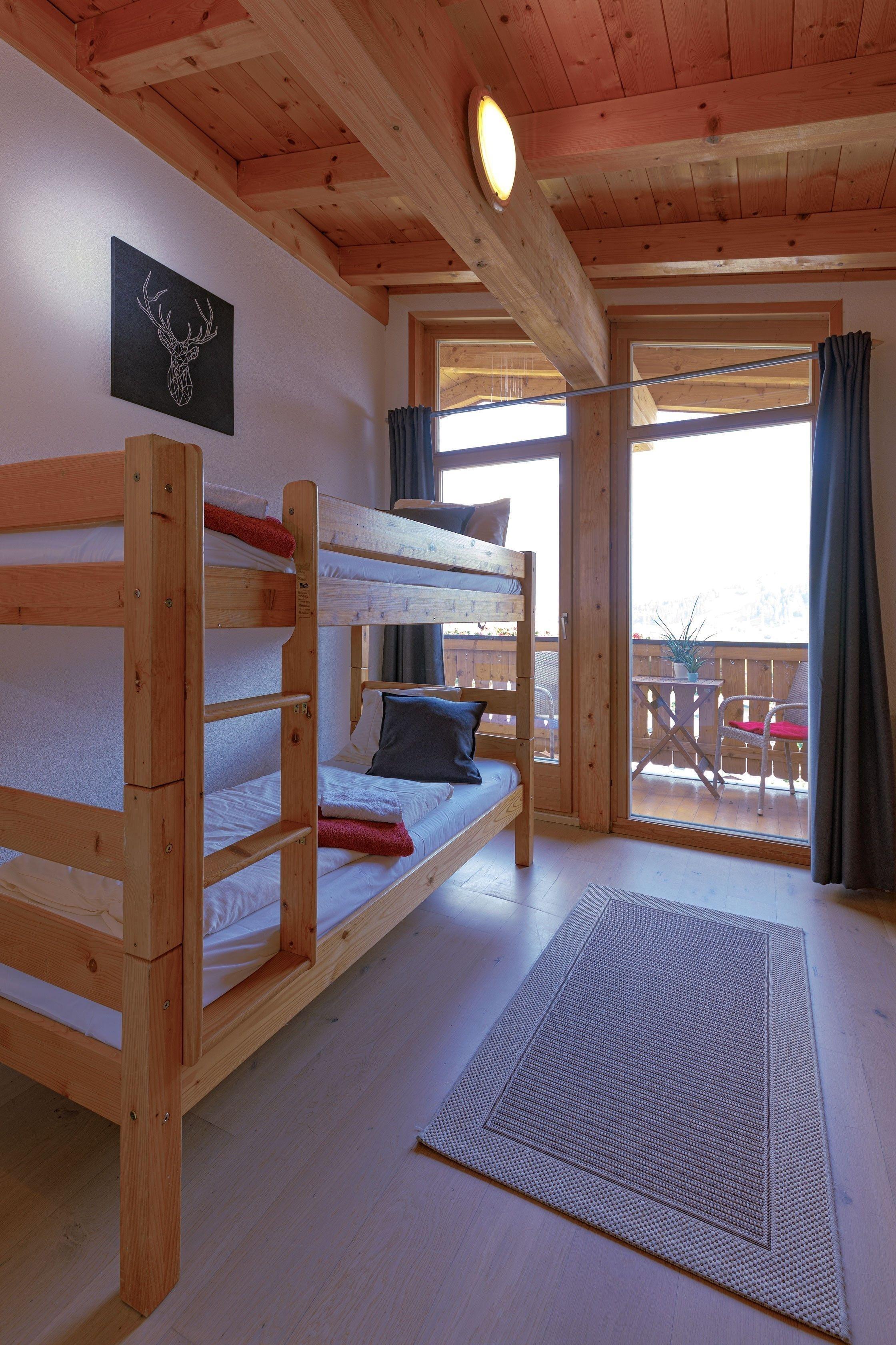 1 Schlafzimmer für vier Personen (1 zweipersonsbett und ein Etagenbett) mit Flatscreen;