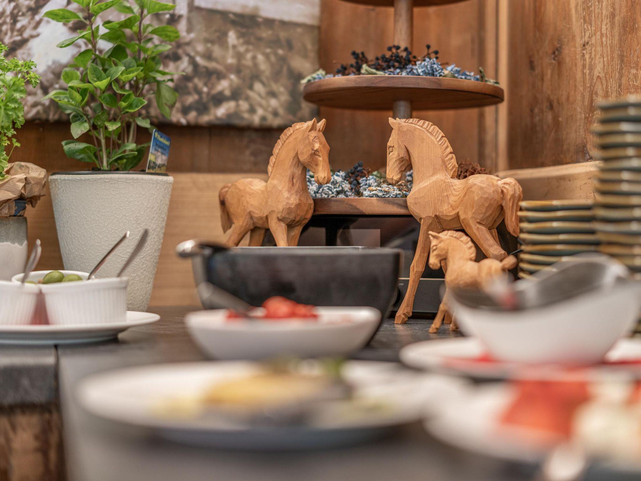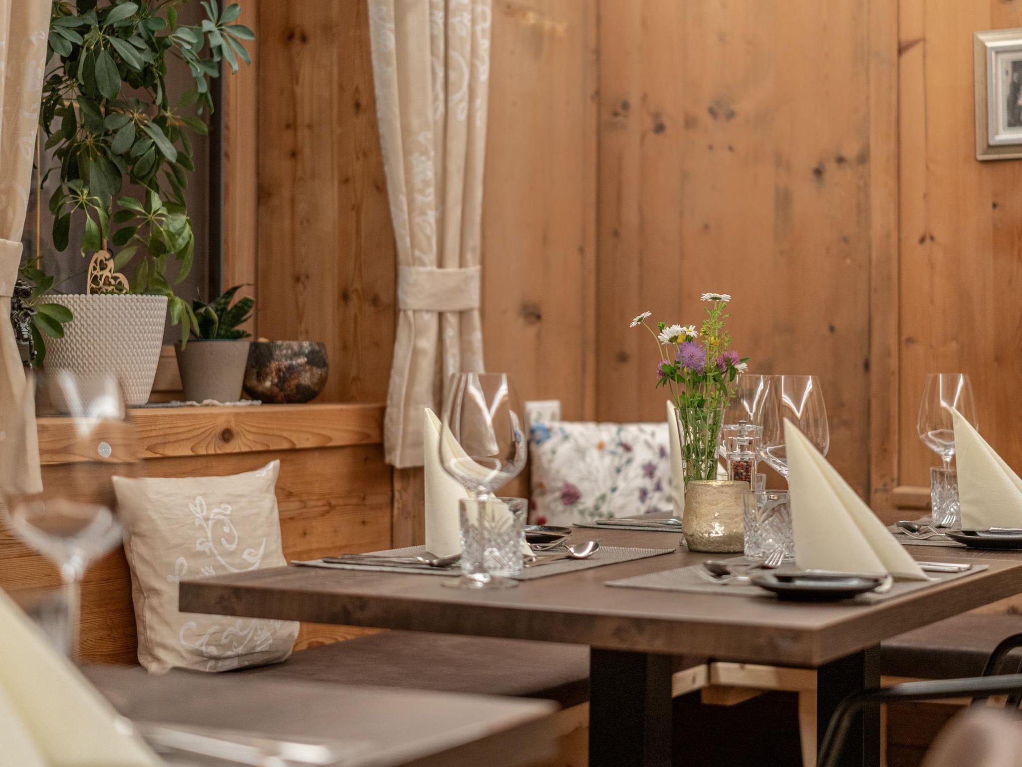 Beste Kulinarik genießen unsere Gäste in mehreren gemütlichen Stuben des Restaurants. Nebenan begeistern die neuen Stadl-Apartments mit eigener Sauna und viel Freiraum für 2- 6 Personen. Alpin moderne Wohnungen mit höchstem Wohnkomfort, auch buchbar mit Halbpension (Frühstücksbuffet und am Abend das Genießermenü mit Salaten vom Buffet). Für jede Familiengröße das Passende!