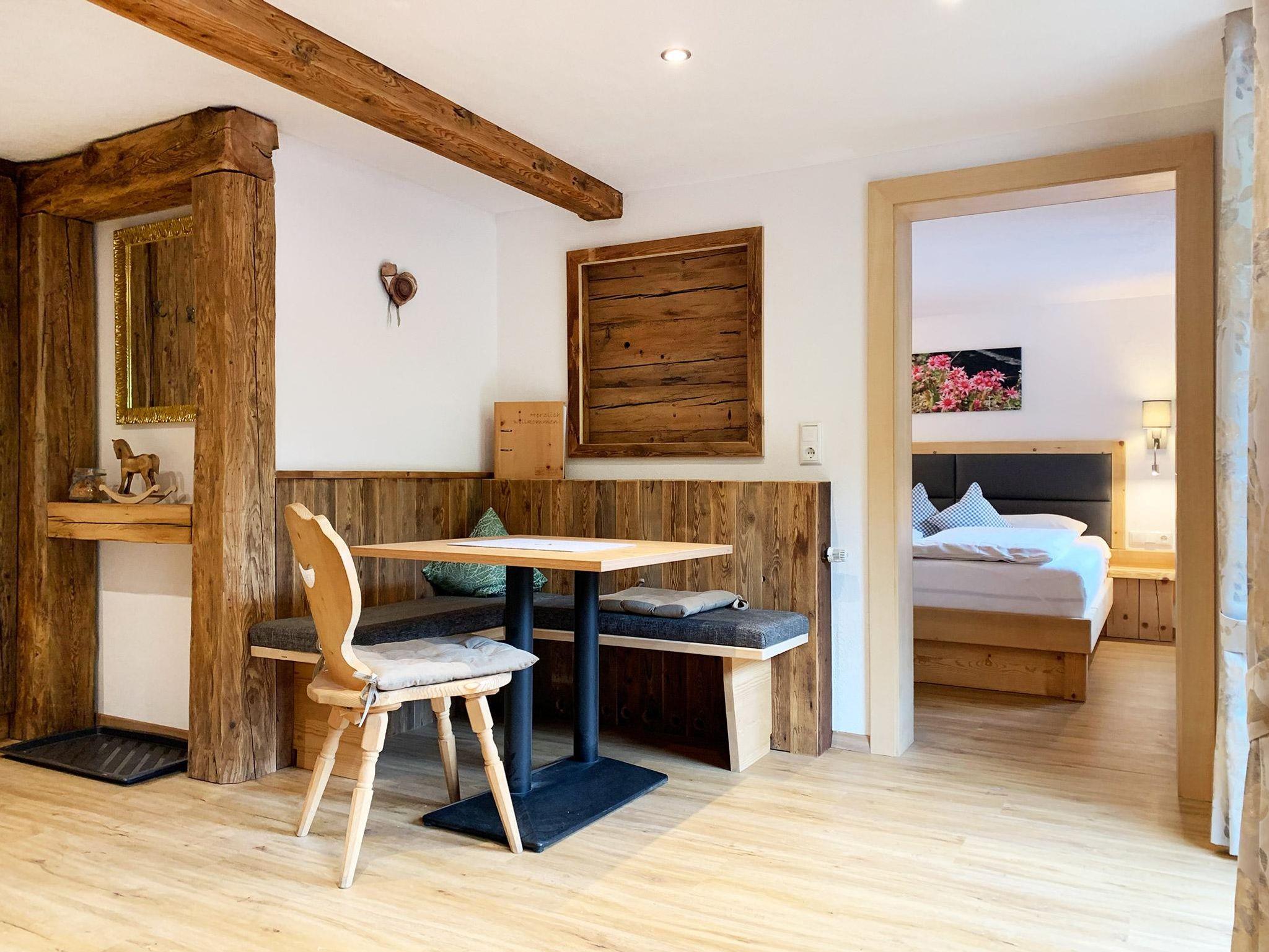 Wer es traditionell ländlich liebt, bucht im Stubenhaus: Authentische Doppelzimmer oder Apartments für 2-5 Personen mit neu renovierten Bädern, sehr bequemen Betten und dem Duft von Fichtenholz.