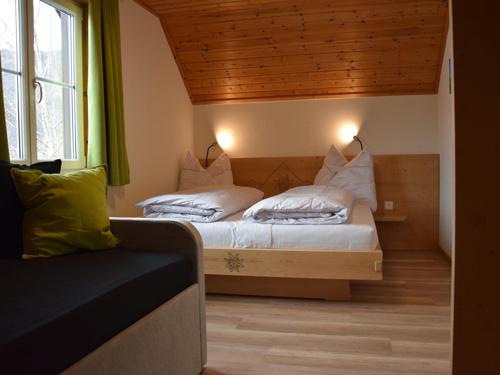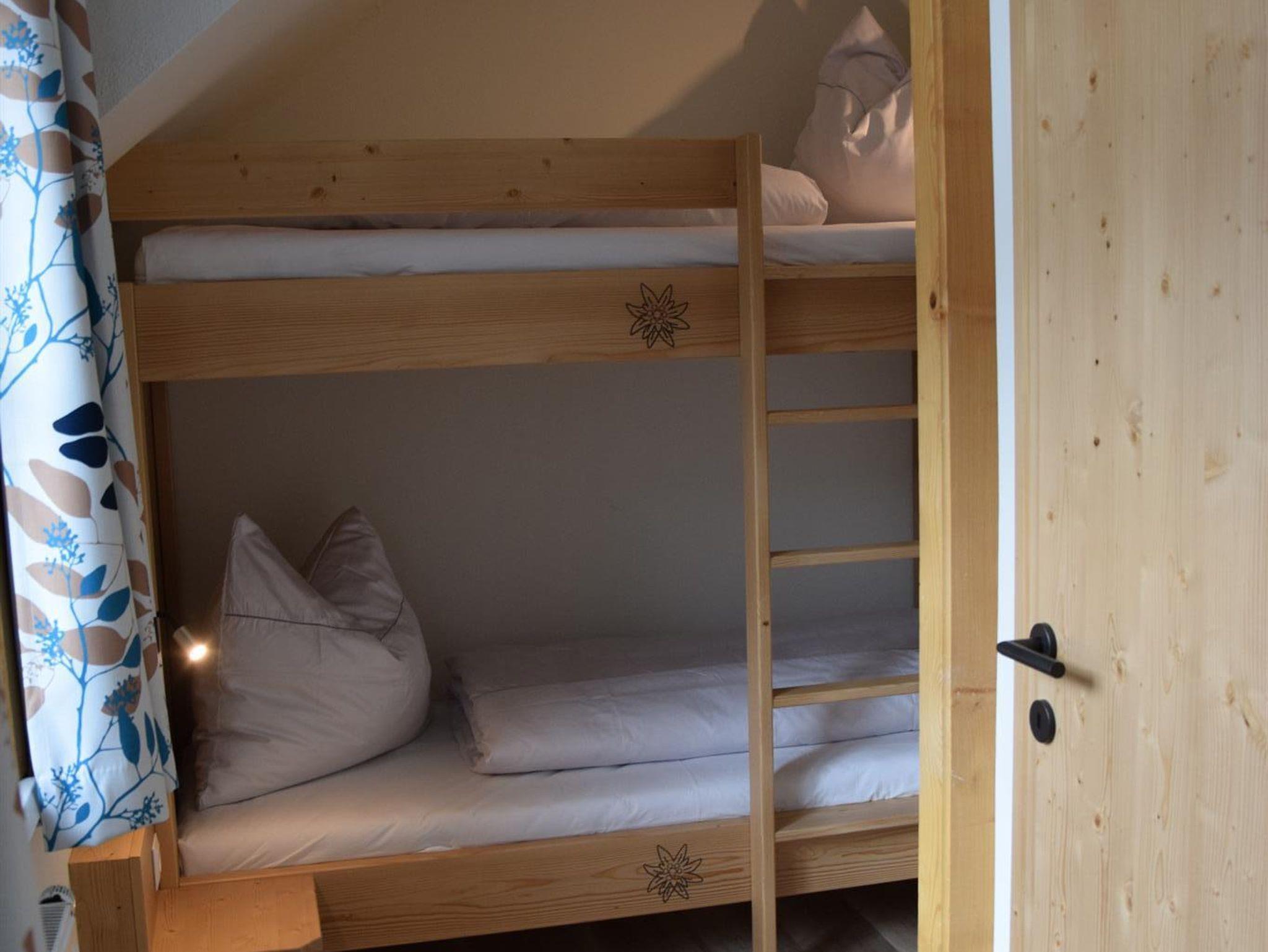 In unserem Selbstversorgerhaus gibt es im Erdgeschoss einen großen Aufenthaltsraum mit Kaminofen, Sat-TV, einer bequemen Couch und großem Esstisch. Auch eine große, voll ausgestattete Küche mit kleiner Sitzecke befindet sich hier. Ebenfalls im Erdgeschoss sind die WCs. Im oberen Stockwerk des Hauses sind die 4 gemütlichen Schlafzimmer mit Platz für bis zu 10 Personen. Im Keller des Hauses befindet sich das Badezimmer mit jeweils 2 Waschbecken und 2 Duschen. Auch eines der Highlights des Alpenvereinshauses, der hauseigener Boulderraum, befinden sich im Keller.