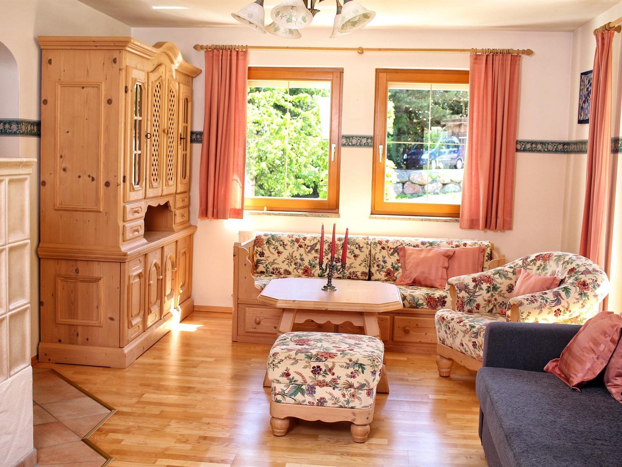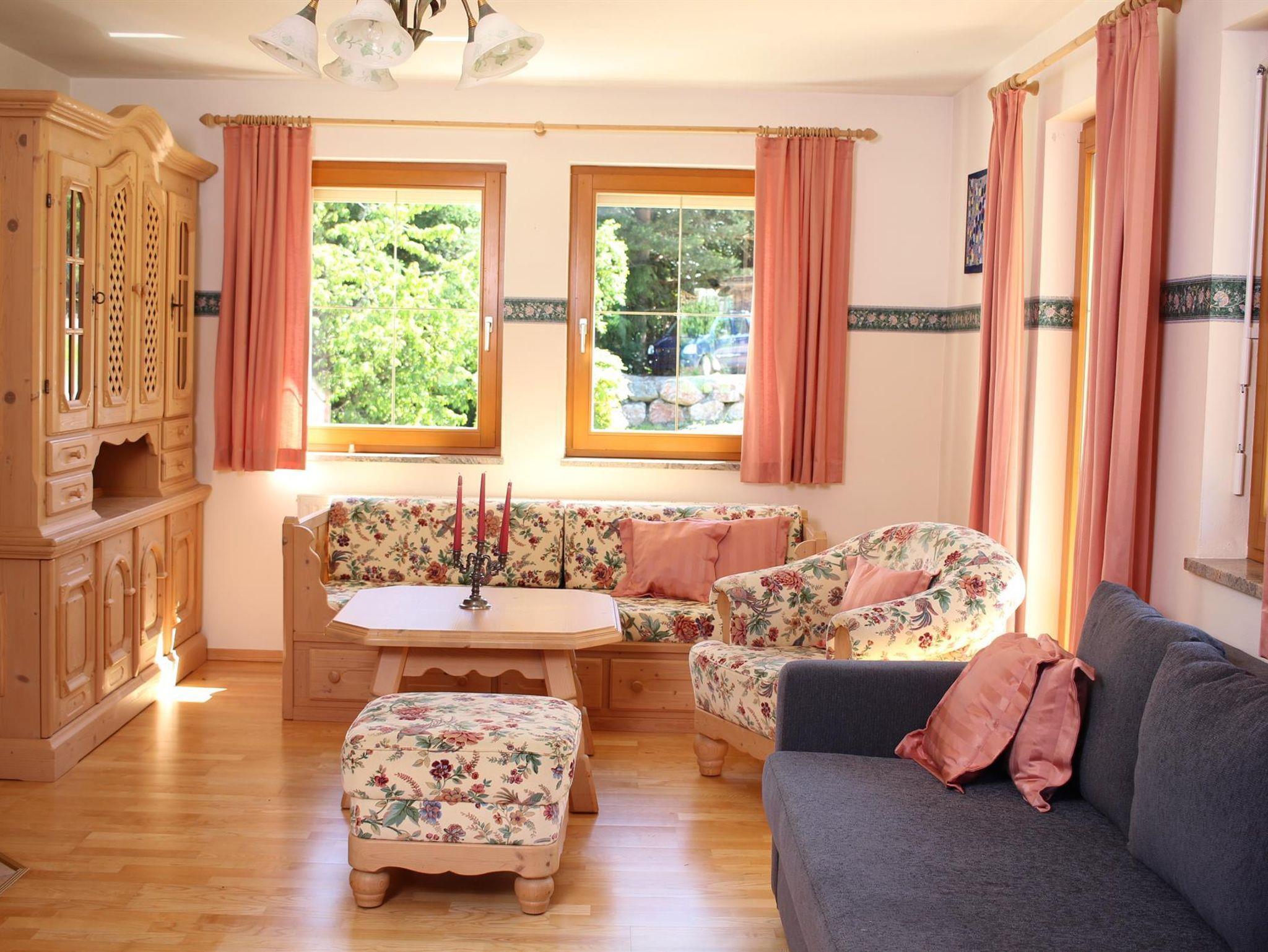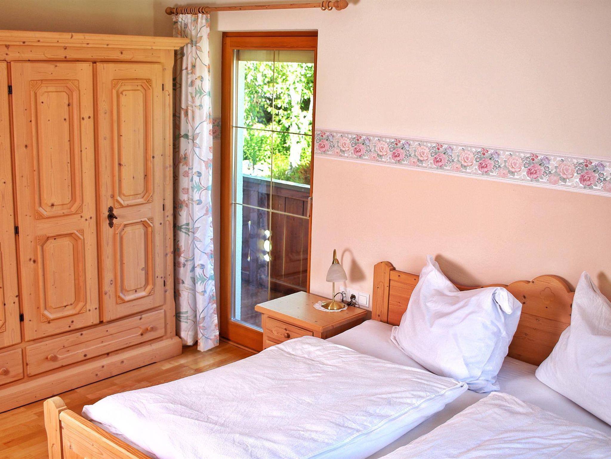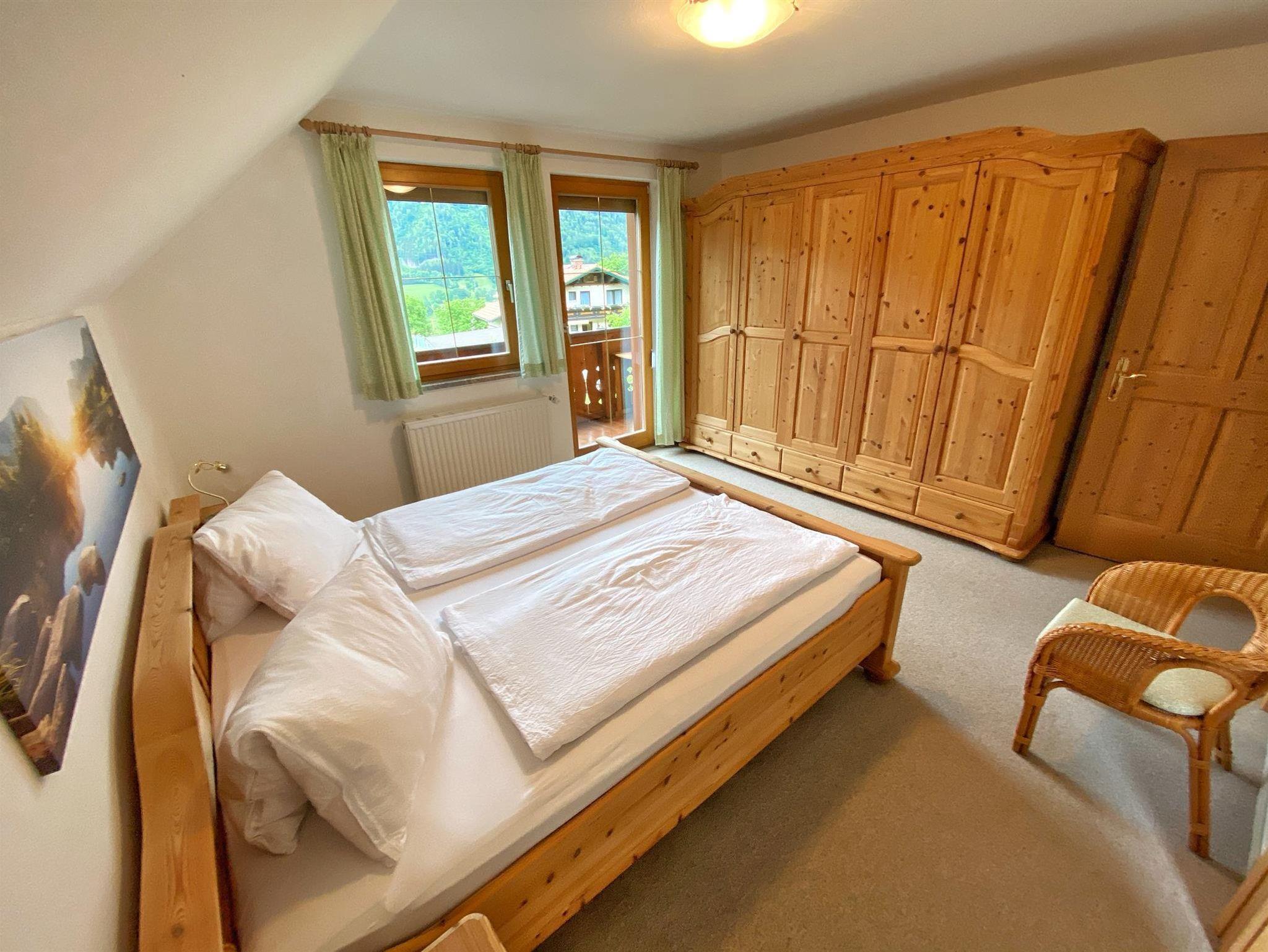 Das Apartment im Obergeschoss verfügt über 2 Schlafzimmer mit Doppelbett und 1 Wohnzimmer (mit Schlafsofa) und angrenzender Küche bietet Platz für bis zu sechs Personen. Das Apartment ist ausgestattet mit einem Flachbild-Sat-TV, einen Essbereich, eine gut ausgestattete Küche (Geschirrspüler, Kühlschrank, Backofen, Mikrowelle, Wasserkocher, Kaffeemaschine) und zwei eigene Bäder mit einer Dusche und Toilette. Ein Balkon mit Gartenblick und einer mit Bergblick. Gerne kann der Garten mitbenutzt werden, Grillmöglichkeit steht zur Verfügung.