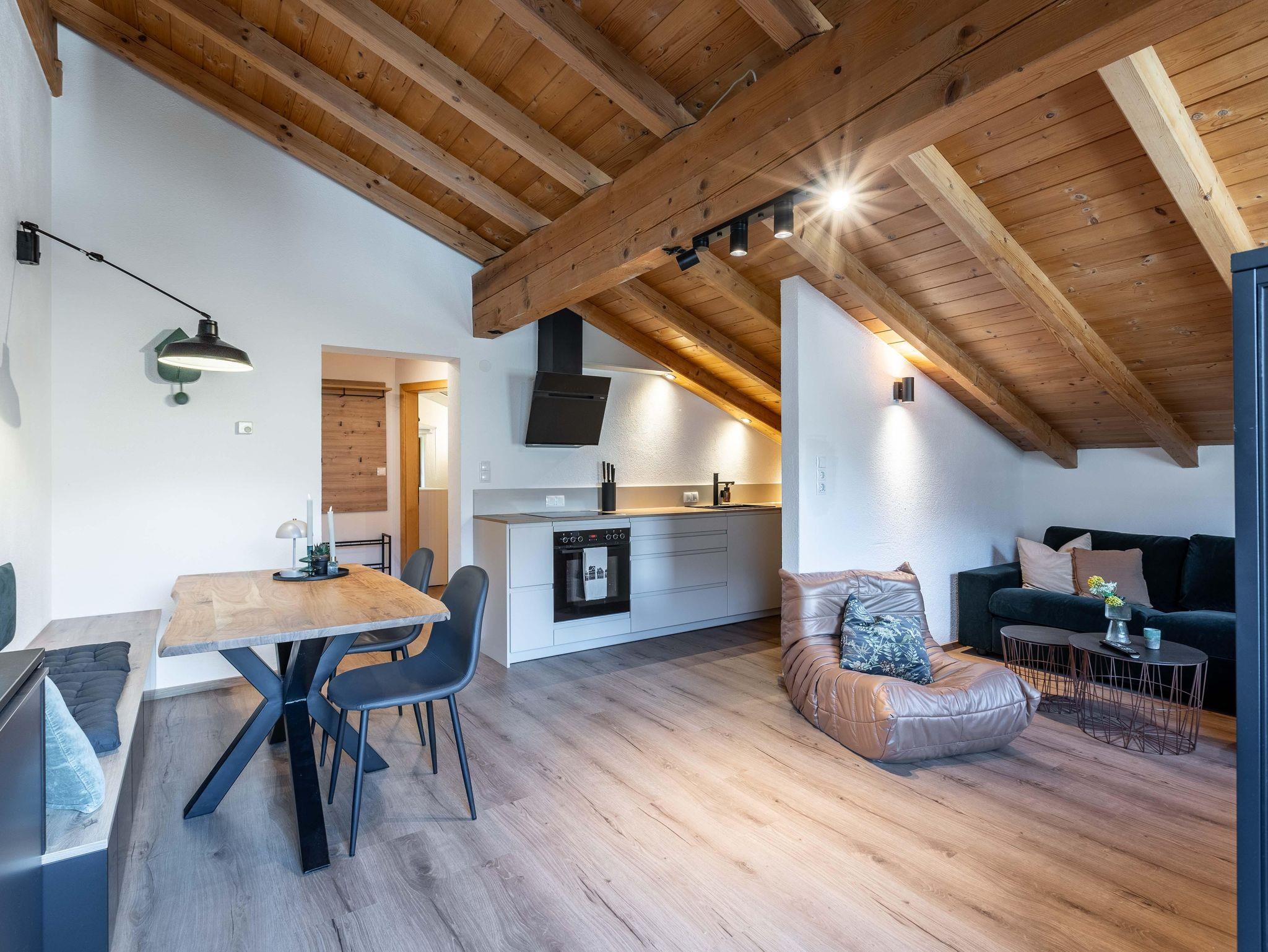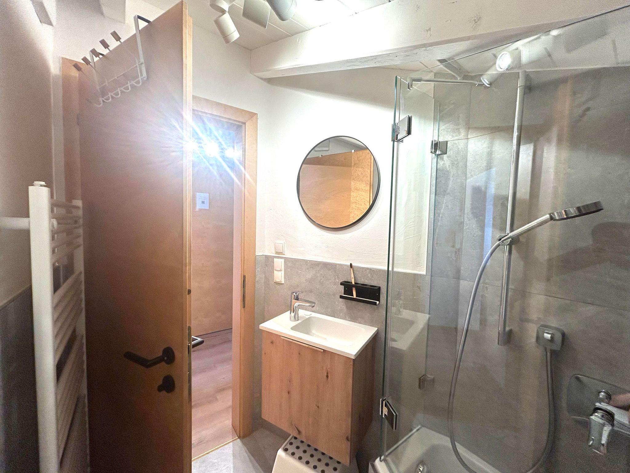 Willkommen im Prutzig am Inn, Deinem perfekten Rückzugsort für einen erholsamen Aufenthalt für bis zu 4 Personen. Das 42m² Apartment befindet sich im 2. Stock und verfügt über ein Schlafzimmer mit Doppelbett sowie einer gemütlichen Schlafcouch im Wohnzimmer. Eine vollausgestattete Küche mit Backofen und Elektroherd lädt zu gemeinsamen Kochabenden ein. Das Badezimmer verfügt über Badewanne/Dusche und WC. Genieße den Komfort einer eigenen Unterkunft und entspanne in ruhiger Umgebung. Im Sommer gibt es die Möglichkeit, die Fahrräder im Skikeller unterzustellen.