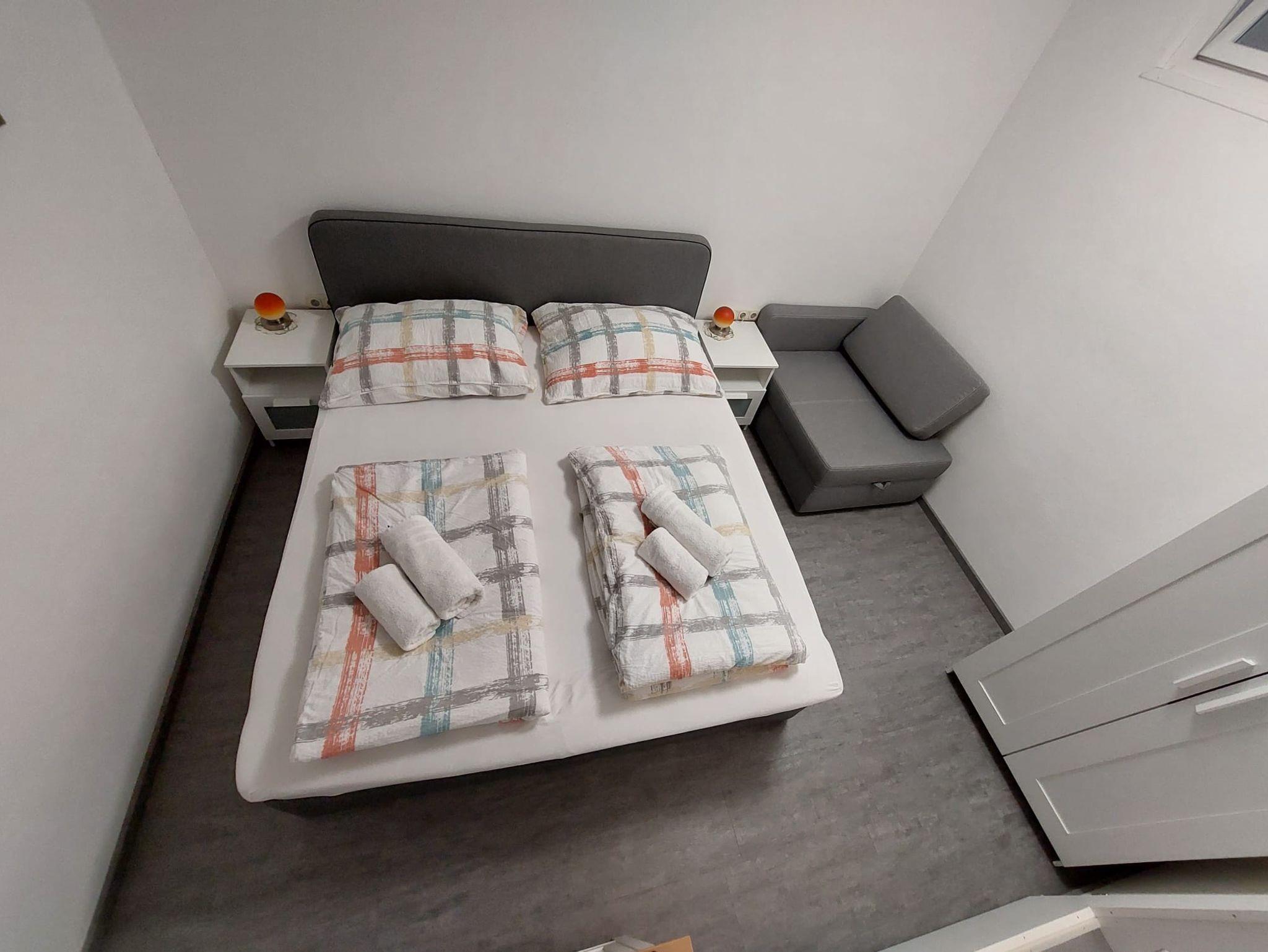 Unsere 30 m² große Ferienwohnung besteht aus 1 Schlafzimmer (mit einem Doppelbett sowie einer Zustellcouch), sowie einer Küche, Bad mit WC. Die Räume sind komplett ausgestattet mit Bettwäsche, Geschirr, Fernseher. Die Wohnung bietet für bis zu maximal 3 Personen Platz. Gratis Internet - WLAN