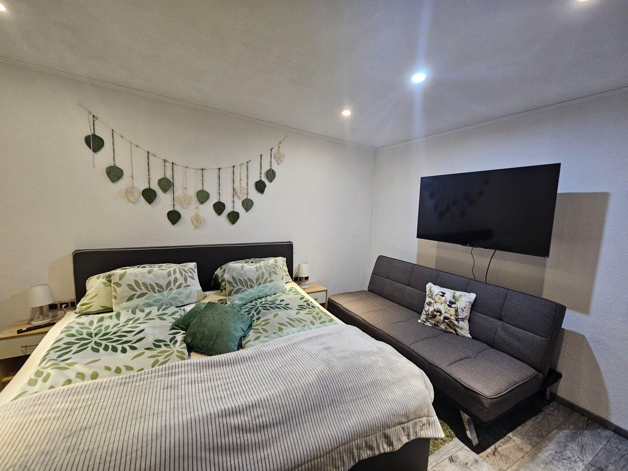 Die Innenausstattung unseres Hauses umfasst zwei gemütlich eingerichtete Schlafzimmer, die sich ideal für Familien oder kleine Gruppen eignen. Der Wohnbereich besticht durch ein offenes, helles Design mit rustikalen Holzelementen und modernen Akzenten, das einladend und warm wirkt. Die Küche ist voll ausgestattet, um all Ihre kulinarischen Bedürfnisse zu erfüllen, sodass Sie während Ihres Aufenthalts köstliche Mahlzeiten zubereiten können.