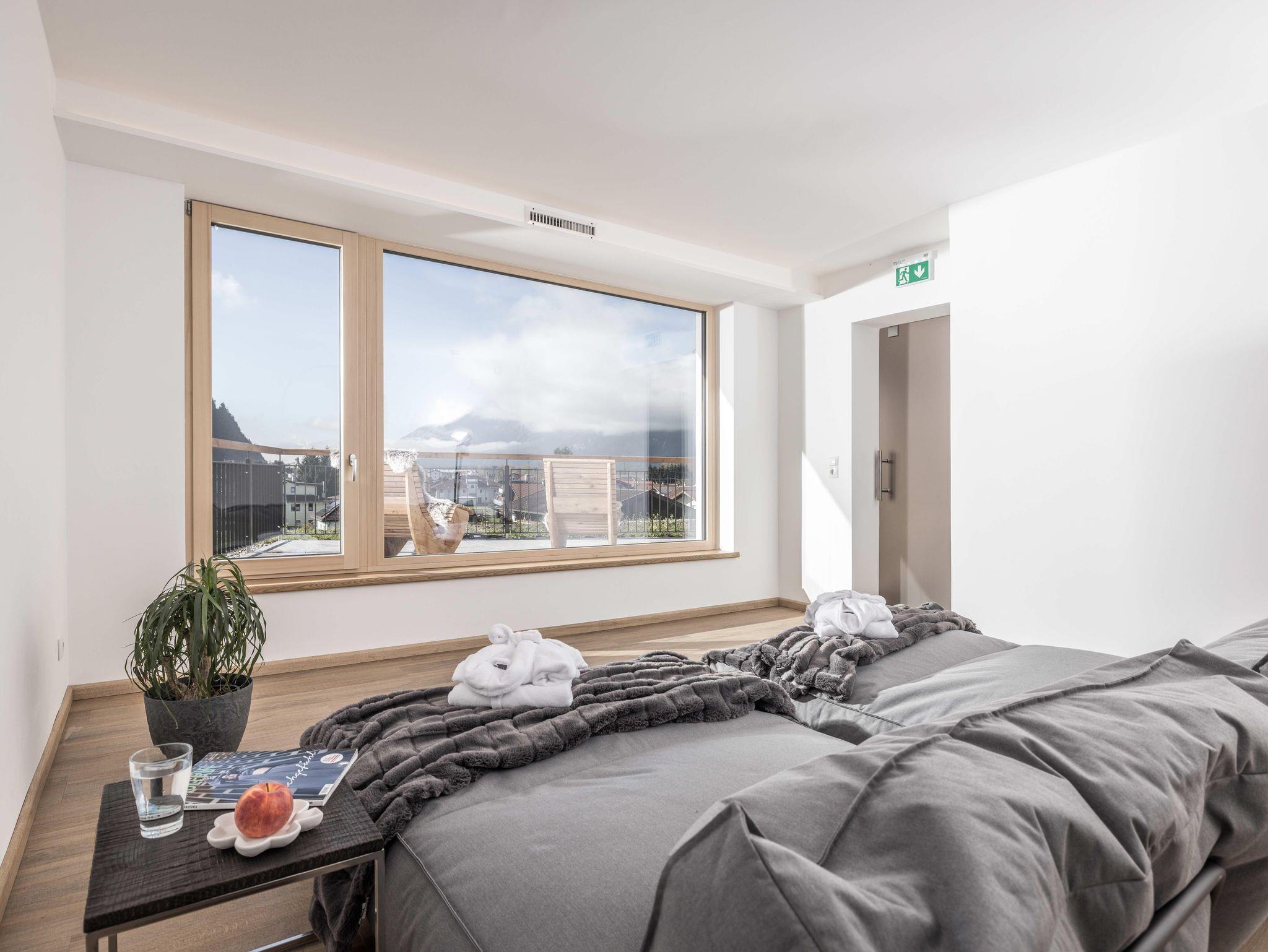 Das Appartement Harmonie befindet sich im 1. Obergeschoss und verfügt über 35m2 und bietet Platz für bis zu zwei Personen. Das modern eingerichtete Appartement hat einen Blick auf das Sonnwendjoch.