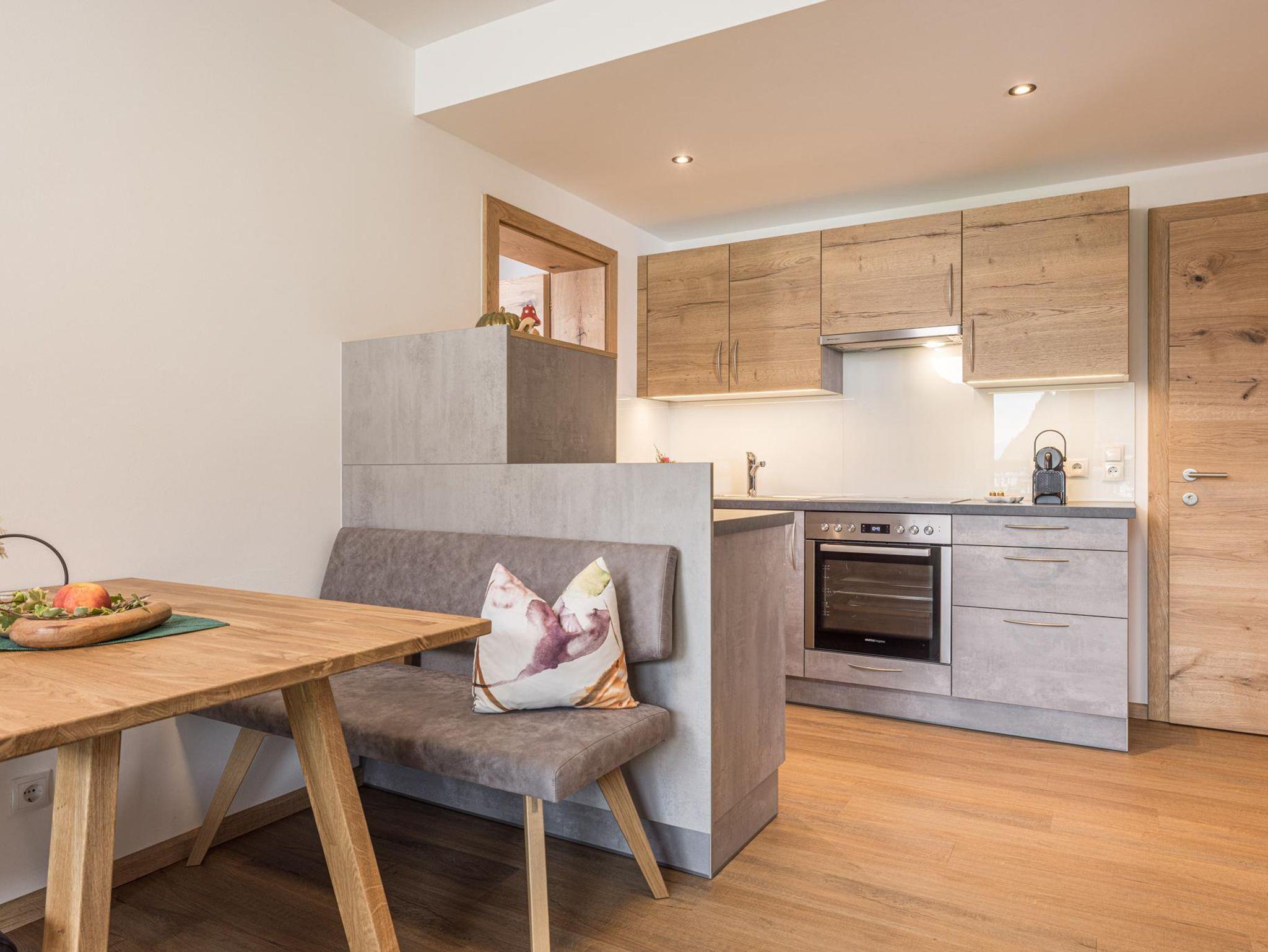 Das Appartement Auszeit befindet sich im 2. Obergeschoss (60m2) und bietet Platz für bis zu vier Personen. Das moderne Appartement mit Blick auf den Rattenberger Schlossberg sowie das Inntal verfügt über zwei getrennte Schlafzimmer mit einem großzügigen Doppelbett sowie einem Stockbett und einem Wohn - Essbereich. Die Küche ist voll ausgestattet: Nespresso Maschine, Wasserkocher, Kühlschrank mit Gefrierfach, Backofen, 4- Platten Cerankochfeld, Geschirrspüler, Kochuntensilien und Geschirrtücher. TV Geräte finden Sie im Wohn - Essbereich wie auch in den Schlafzimmern vor. Ebenfalls bietet das Appartement eine gemütliche Essecke sowie ein Sofa an.