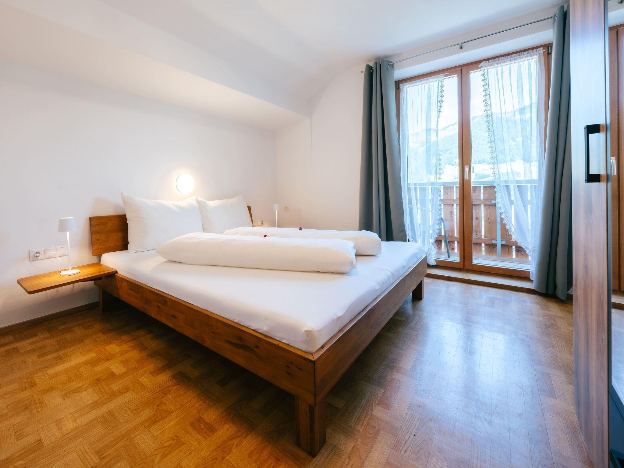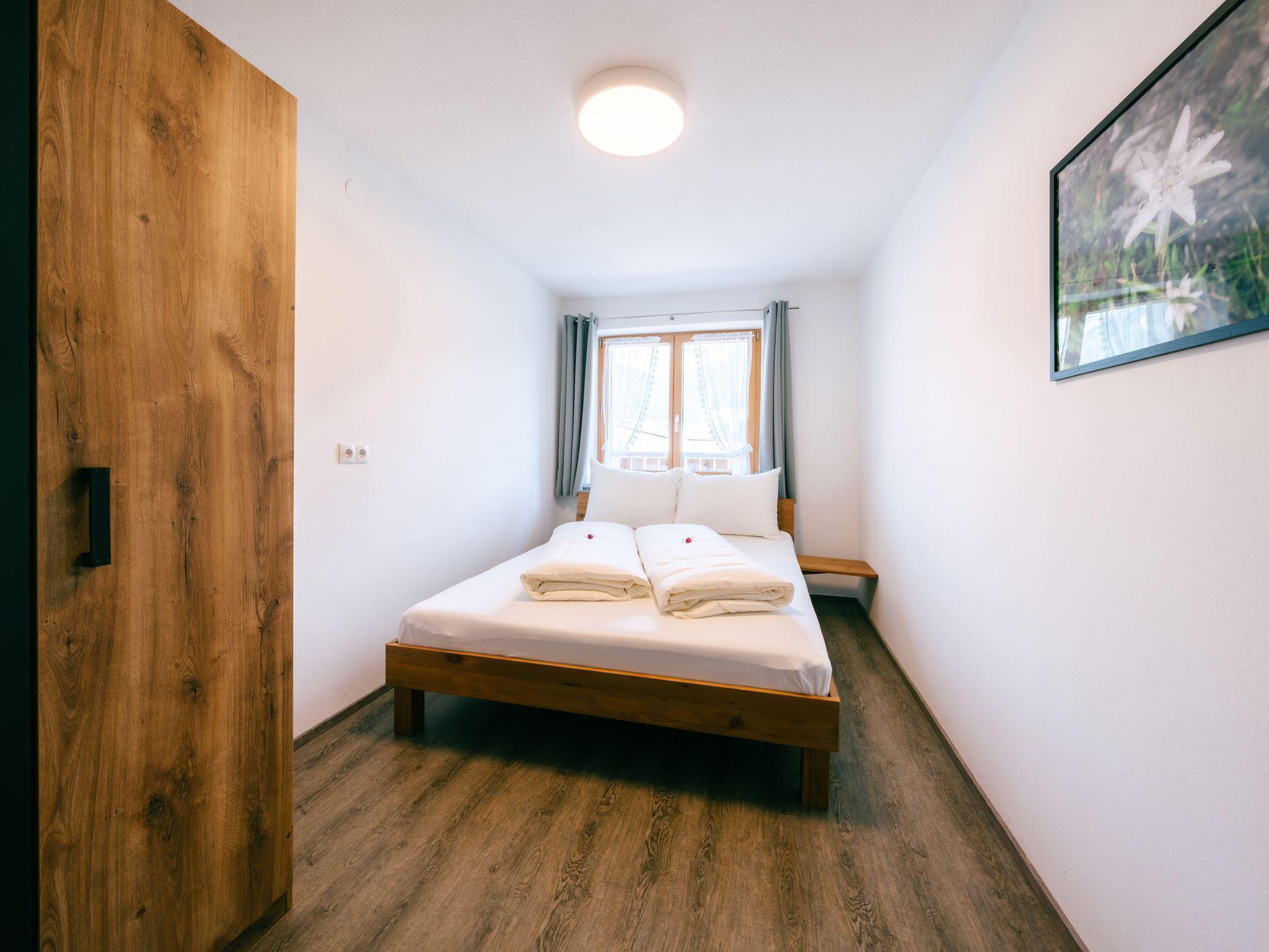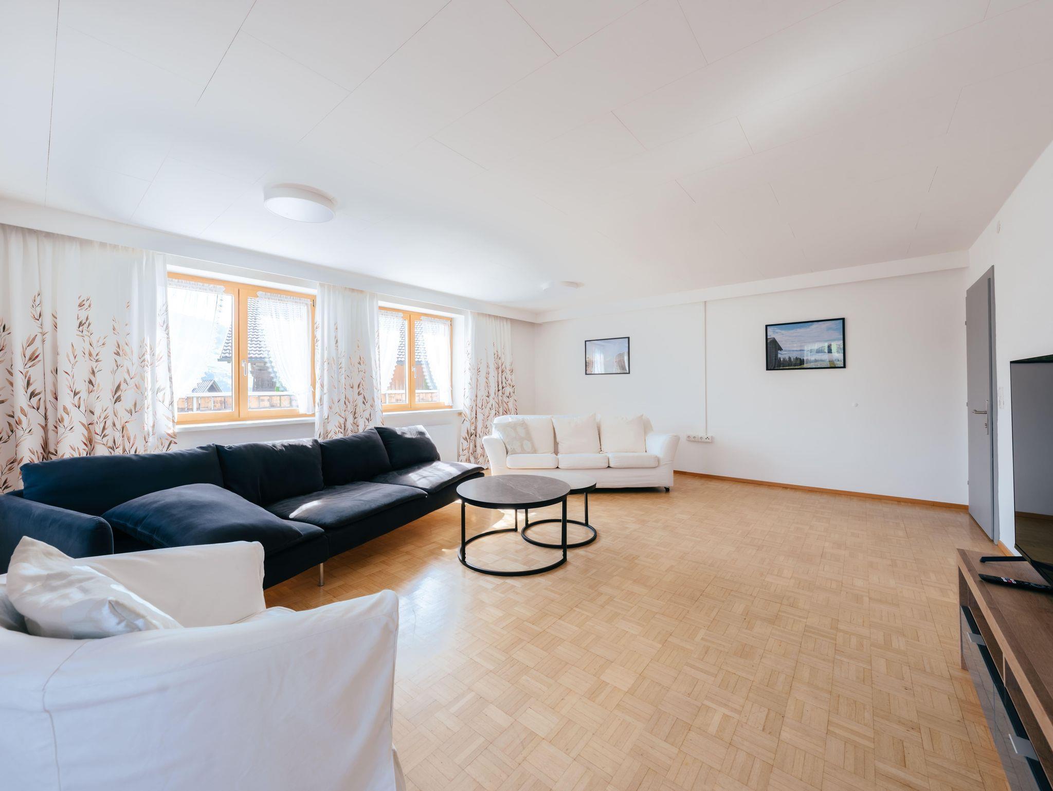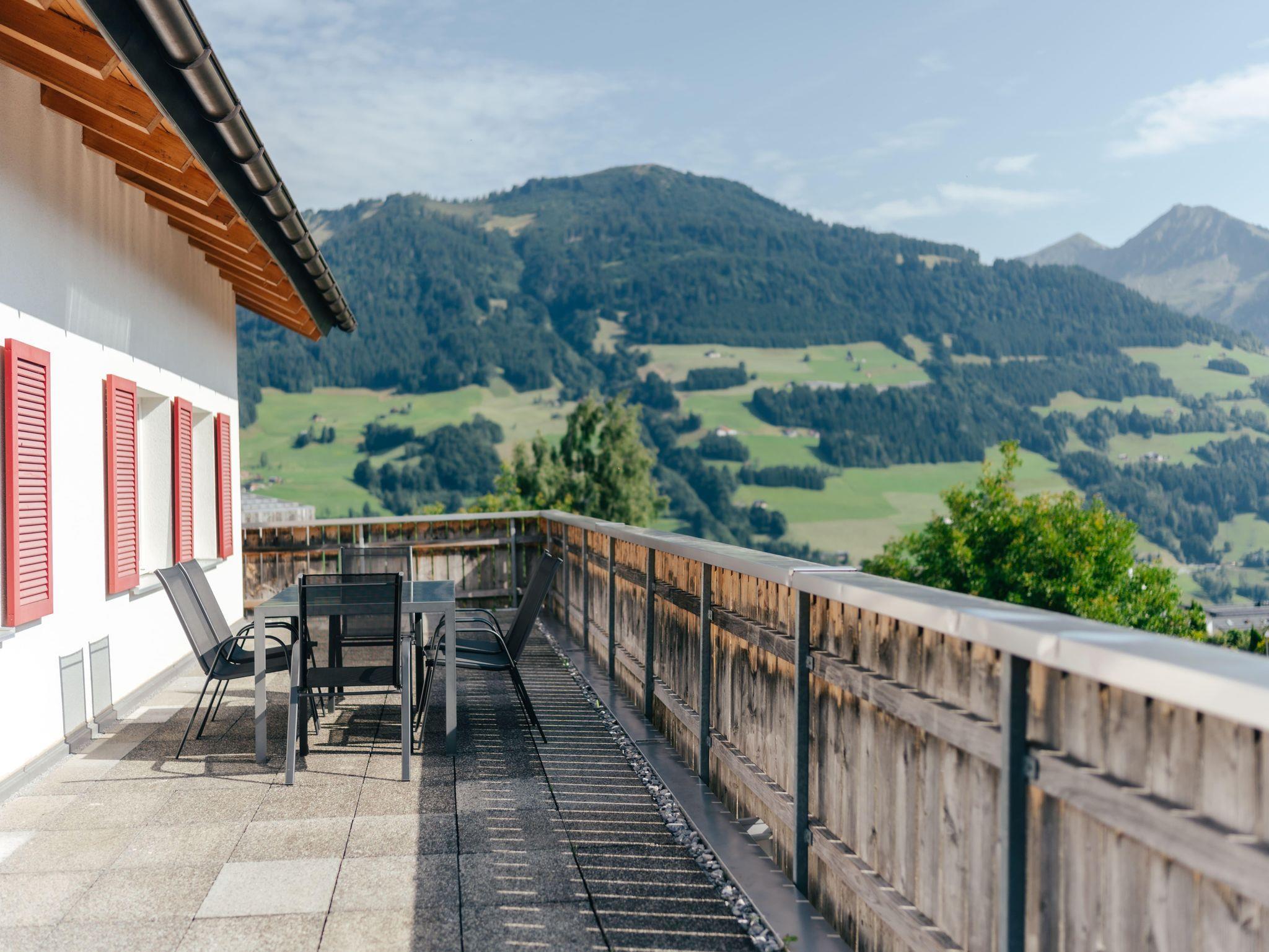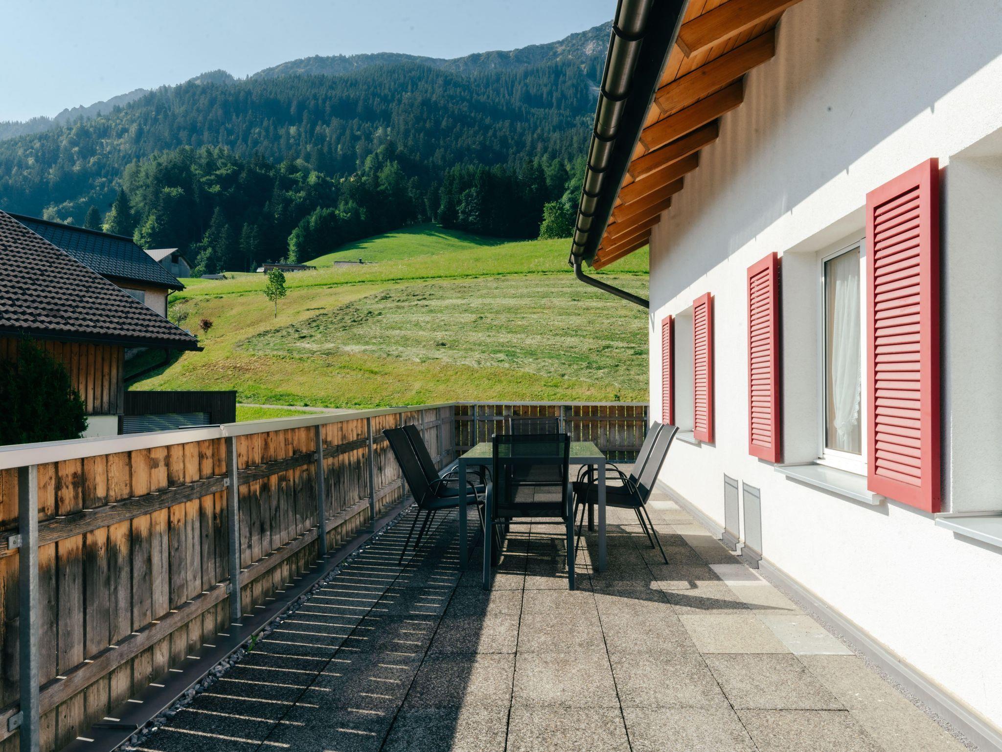 Die Wohnung verfügt über 5 gemütliche Schlafzimmer, ein einladendes Wohnzimmer sowie eine große Terrasse und Balkone, die sich über drei Hausseiten erstrecken. Genießen Sie hier die herrliche Ruhe, frische Bergluft und den Blick in die Natur.