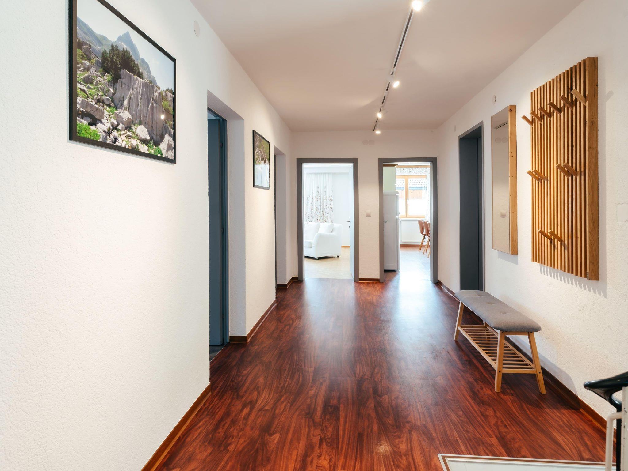 Die großzügige Wohnung mit 134 m² befindet sich im ersten Stock eines charmanten Hauses und bietet ausreichend Platz für bis zu 10 Personen – ideal für große Familien oder Gruppen. Die Ferienwohnung verfügt über fünf komfortable Schlafzimmer, ein einladendes Wohnzimmer, eine große Terrasse sowie Balkone, die sich über drei Seiten des Hauses erstrecken. Genießen Sie die ruhige Atmosphäre, die frische Bergluft und den herrlichen Blick auf die umliegende Natur.
