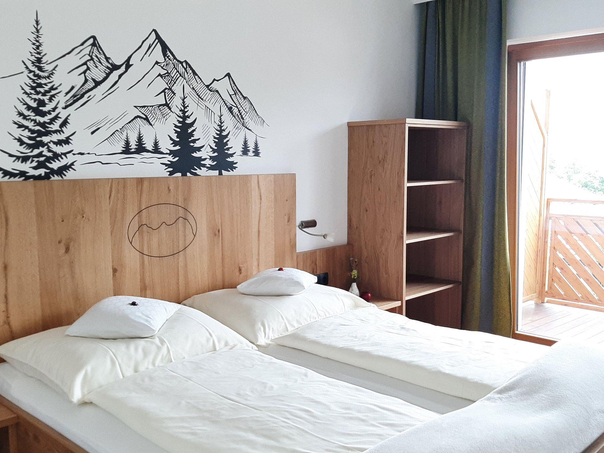Wir bieten Ihnen sieben liebevoll eingerichtete und gemütliche Doppelzimmer wie auch ein großzügiges Familienzimmer mit Verbindungstür. All unsere Zimmer sind hochwertig mit hellen Holzmöbeln gestaltet und empfangen Sie in freundlicher Atmosphäre. Direkt aus den Zimmern, alle zwischen 25 und 33m² groß, haben Sie einen traumhaften Blick auf das Dachsteinmassiv, auf den Rittisberg oder in die Schladminger Tauern. Die Zimmer sind ausgestattet mit Dusche & WC, Fön, Sat-TV und einem großen Sonnenbalkon mit gemütlicher Sitzgelegenheit auf dem Sie den Abend mit der Familie angenehm ausklingen lassen.