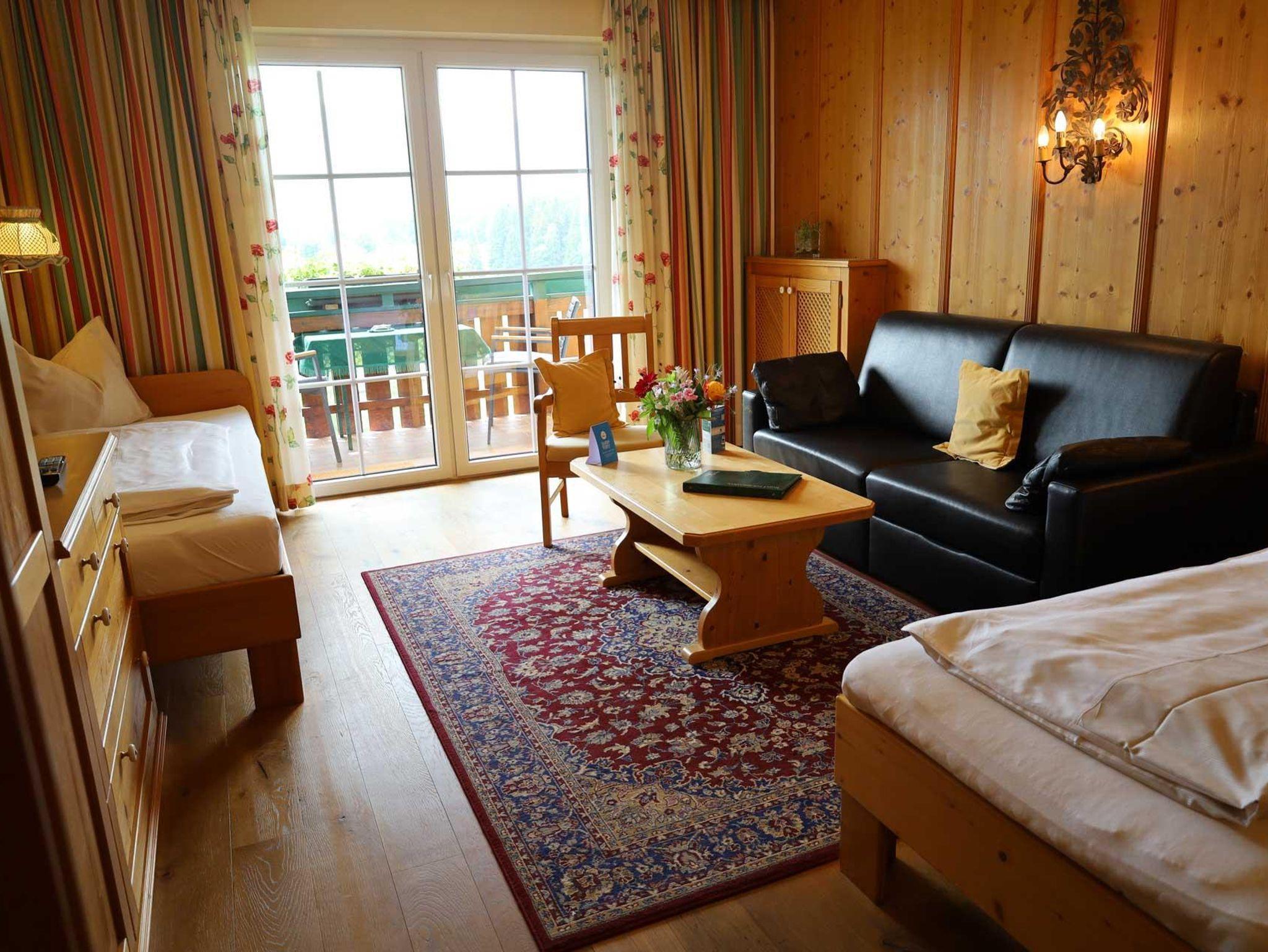 Unsere komplett eingerichteten und komfortablen Ferienwohnungen für 2-5 Personen bieten Ihnen einladende Schlafzimmer, moderne Badezimmer mit separatem WC, einen großen Wohnschlafraum mit Balkon und wunderschönem Panoramablick auf die umliegende Berglandschaft. In der voll ausgestatteten Küche mit gemütlicher Sitzecke genießen Sie gesellige Urlaubstage mit Freunden und Familie. Jede Ferienwohnung ist auch mit unserem köstlichen Frühstück oder Halbpension buchbar.