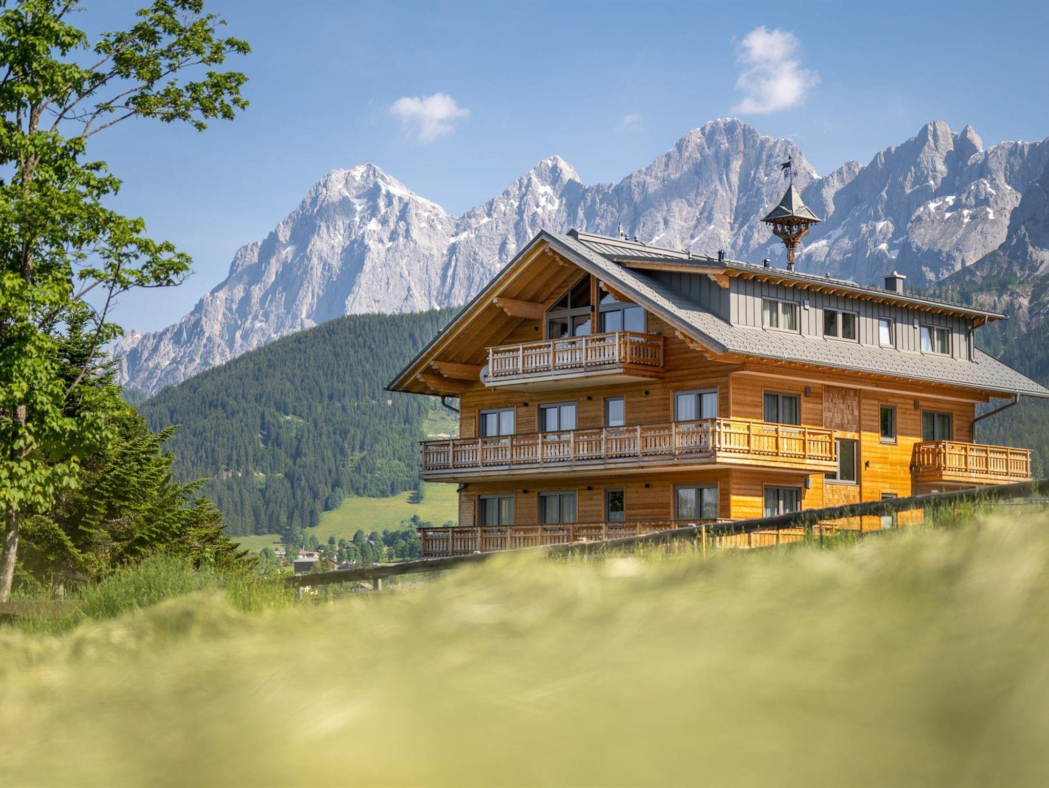 NEUERÖFFNUNG Mai 2021 - Design trifft Tradition in der im Mai 2021 neu eröffneten Alpine Residence Dachsteinperle - familiäre Atmosphäre seit 1975. Umgeben von der atemberaubenden Bergwelt auf dem Ramsauer Hochplateau bietet Ihnen die Alpine Residence Dachsteinperle einen einzigartigen Panoramablick über das Dachsteinmassiv und die Niederen Tauern.