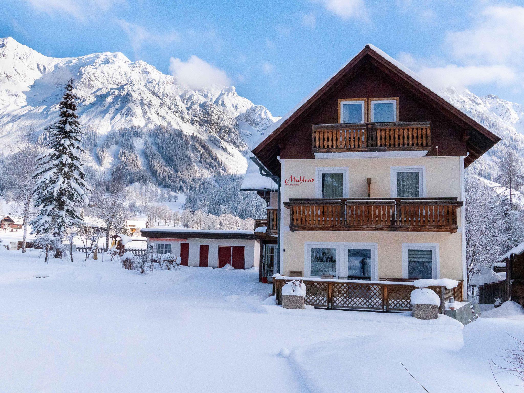 Im Sommer lädt der großzügige Garten am idyllischen Bach zum Entspannen ein, während zahlreiche Aktivitäten wie Wanderungen oder Spaziergänge direkt vom Haus aus beginnen können. Die ruhige und naturnahe Lage wird von einem atemberaubenden Panorama auf das Dachsteinmassiv gekrönt und macht das Mühlrad Appartements zu einem besonderen Rückzugsort für Ihren Urlaub – zu jeder Jahreszeit!