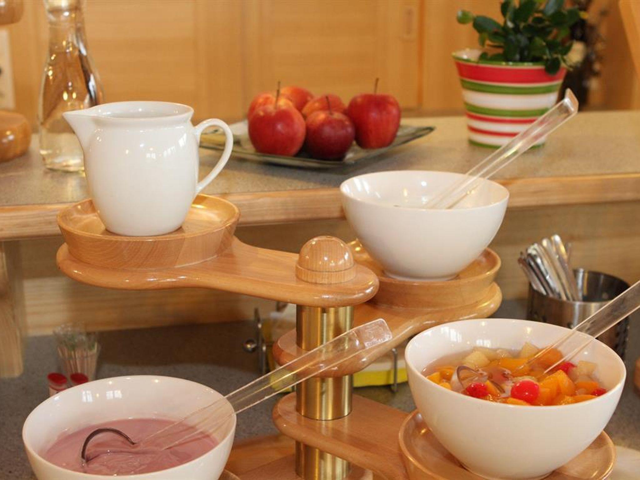 Als Service bieten wir Ihnen täglich frisches Gebäck für Ihr Frühstück an oder gegen Aufpreis können Sie sich gerne an unserem Frühstücksbuffet bedienen.