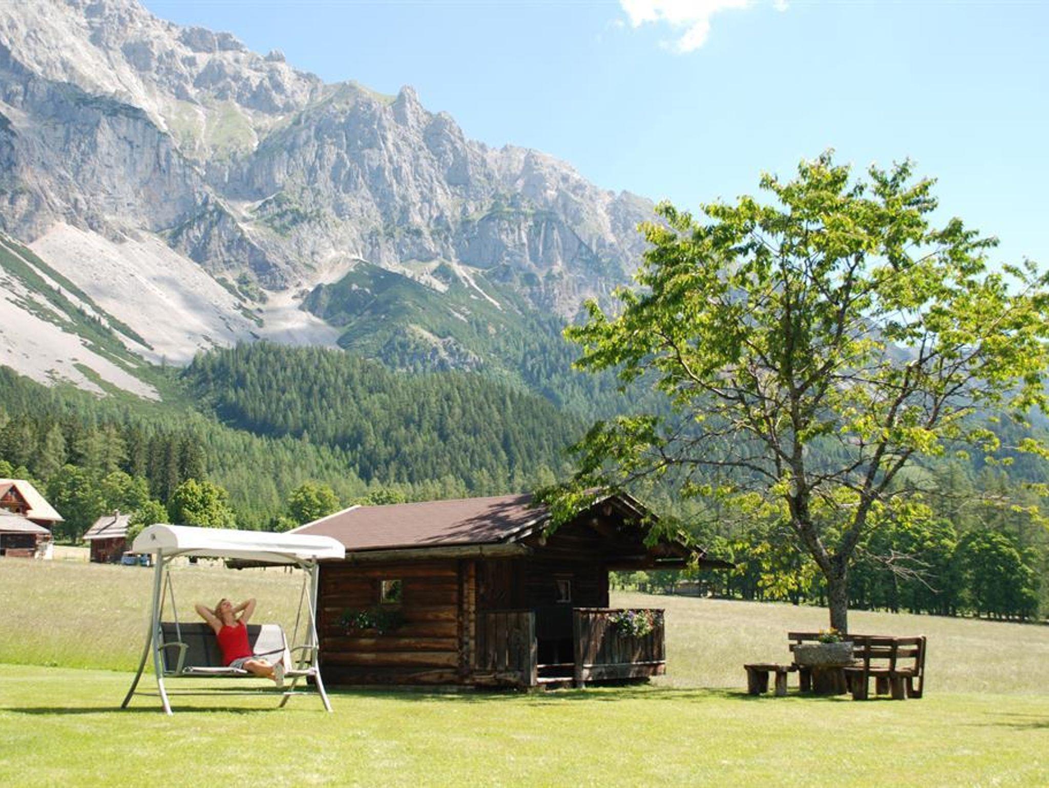 Balkon mit atemberaubender Aussicht auf die Dachstein- und Schladminger Tauernseite.