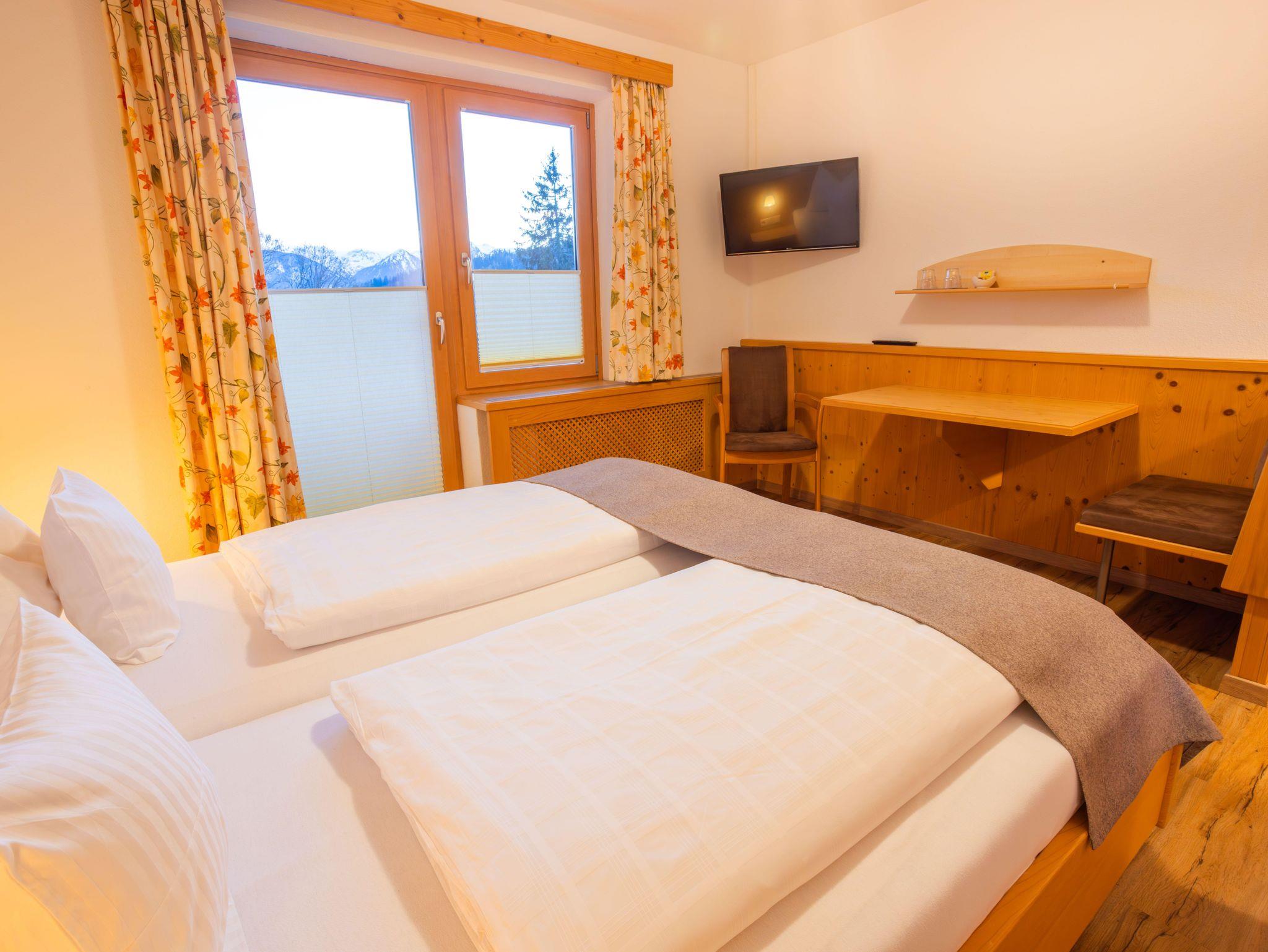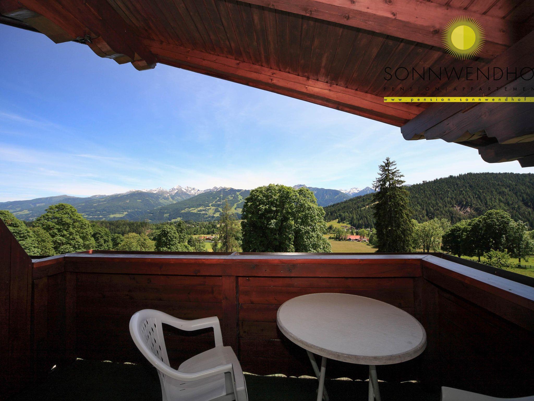Doppelzimmer sehr ruhige, sonnige Lage, mit Balkon und schöner Aussicht in die Tauern und das Dachsteinmassiv.