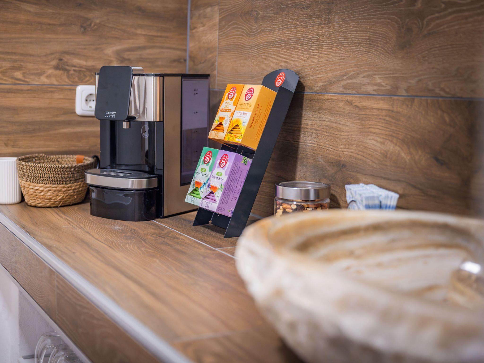 Außerdem werden unsere Gäste mit einem erweiterten Frühstück ( Bio-Gebäck, Müsli, Aufstriche, Wurst, Käse, Marmeladen, Honig, Fruchtsäfte,Obst, uvm.…..) verwöhnt.