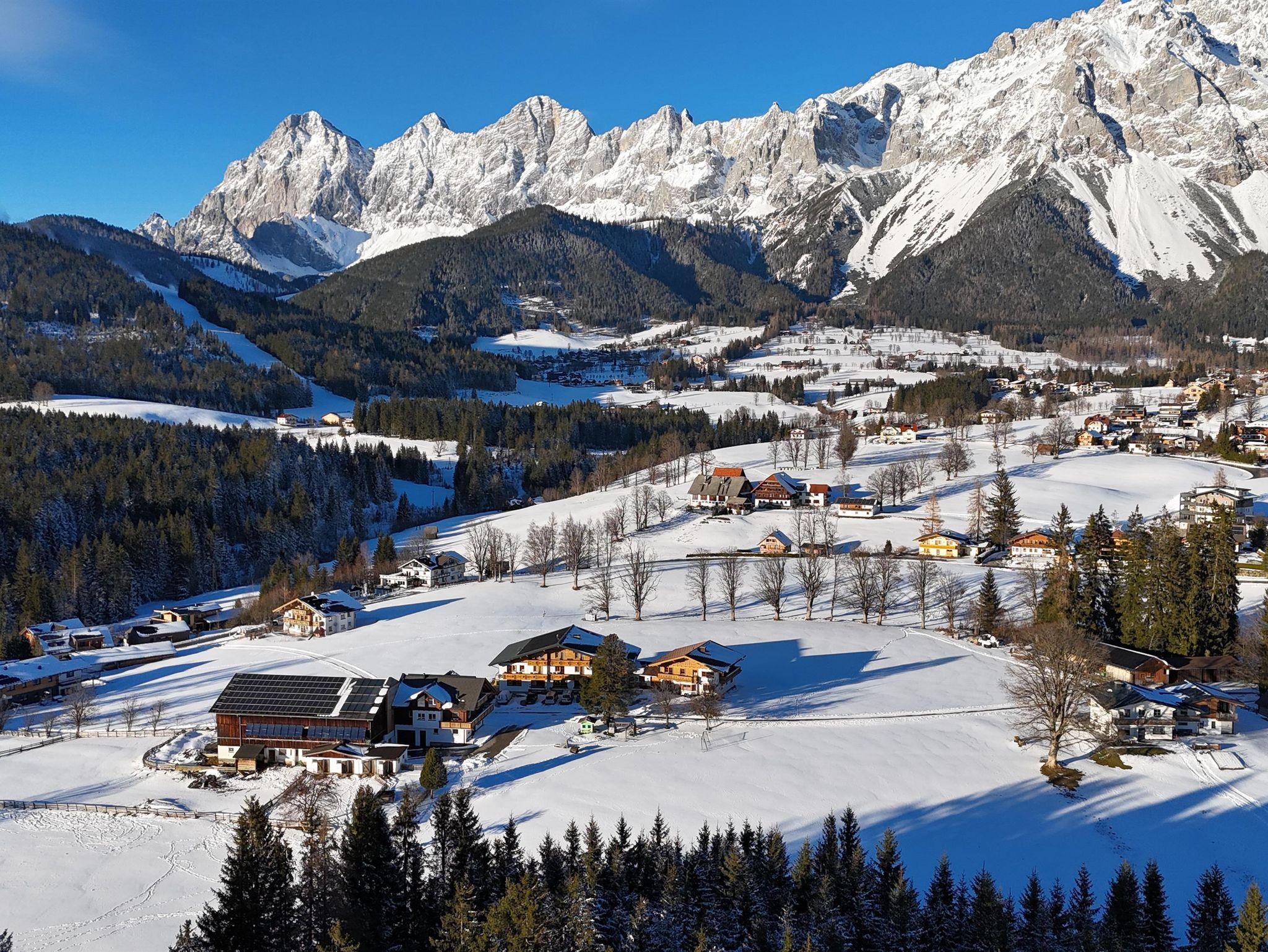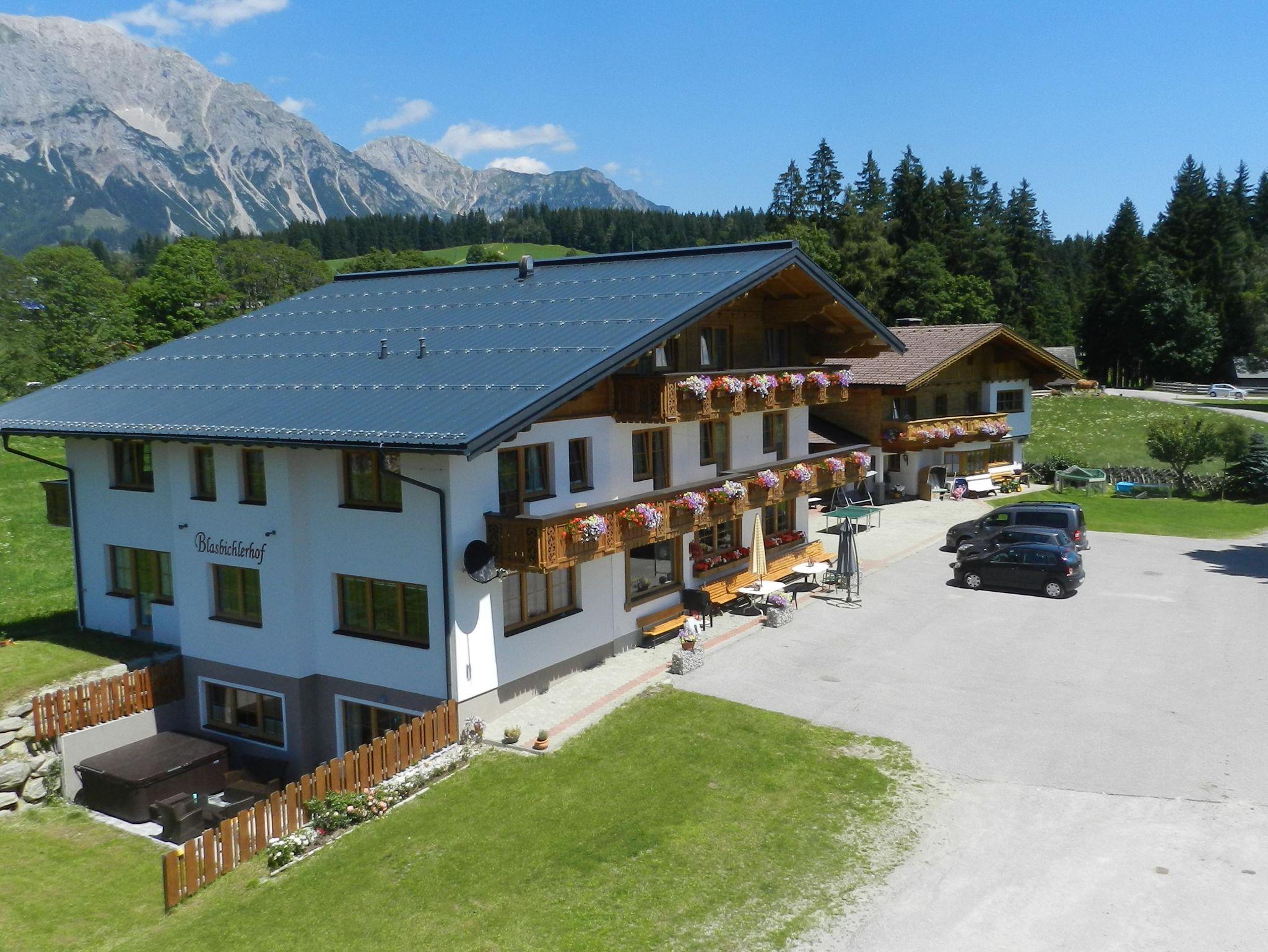 Wir begrüßen Sie herzlich in der Pension Blasbichlerhof mitten im Grünen in ruhiger Lage im malerischen Ortsteil Vorberg von Ramsau am Dachstein. In der Pension Blasbichlerhof können Sie Ihren Urlaub mit Familie und Freunden in vollen Zügen genießen, auch als Gruppe bis zu 30 Personen. Die Haltestelle des kostenlosen Ski- und Linienbusses, der Sie zum familienfreundlichen Skigebiet Rittisberg und zur 4-Berge-Skischaukel im Herzen des Skiverbunds ski amadé bringt, ist nur 3 Gehminuten von unserer Pension Blasbichlerhof entfernt. Die Seilbahn, die Ihnen die imposante Welt des Dachsteingletschers erschließt, ist in nur 15 Autominuten bequem zu erreichen. Hier wird das ganze Jahr Schneegarantie und Pistenspaß pur geboten. Für Wanderungen, Spaziergänge und Mountainbike Touren in der Region Schladming-Dachstein sind wir ebenso der perfekte Ausgangspunkt. Am Morgen werden Sie mit einem großzügigen Frühstücksbuffet begrüßt. Gut gestärkt steht einem ereignisreichen Urlaubstag nichts im Weg. Unsere 15 gemütlichen Zimmer sind alle sehr geräumig und komfortabel eingerichtet, sie verfügen über Dusche/WC, HD Sat-TV und einen großen Balkon mit einem beeindruckenden Blick auf das majestätische Dreigestirn des Hohen Dachsteins. Gerne können Sie bei uns auch mit Halbpension buchen, wo wir Sie am Abend mit einer warmen Buffetplatte direkt am Tisch überraschen. Selbstverständlich nutzen Sie im gesamten Haus Blasbichlerhof das W-Lan kostenfrei. Parken Sie Ihr Auto direkt und sicher vor unserer Pension Blasbichlerhof und stellen Sie Ihre Sport- und Skiausrüstung im Skiraum mit Schuhtrockner ab. In unserem großen Garten mit Liegewiese entspannen Sie in der Sonne, während sich Ihre Kinder auf dem Spielplatz mit Schaukel, Rutsche, Trampolin und im Spielhaus austoben. Auf unserem Bauernhof Blasbichlerhof ist immer etwas los – kein Wunder bei so vielen Tieren, die schon auf die täglichen Streicheleinheiten warten. Weiters gibt es zwei Aufenthaltsräume mit TV, DVD und Playstation 4 - Konsole. Zusätzlich können Sie sich nach einer anstrengenden Wanderung in den Ramsauer Bergen oder nach einem aufregenden Skitag in der Region ski amadé in unserem neu errichteten Saunabereich mit Sauna, Dampfbad und Infrarotkabine erholen. Im Winter kehren Ramsauer Gäste gerne in der von unserer Familie geführten 400 Jahre alten Halseralm ein. Die Halseralm erreichen Sie zu Fuß über idyllische Winterwanderwege oder mit den Langlaufskiern über gut präparierte Loipen, die direkt zur Hütte und noch weiter rund um den Rittisberg führen. Eine romantische Pferdeschlittenfahrt zur Halseralm kann bei den Ramsauer Bauern gebucht werden. In der warmen Stube verwöhnt Sie unsere Familie bei heißem Glühwein oder Jagertee mit Spezialitäten aus der Region. Was bei einem Besuch auf der urigen Halseralm auf keinen Fall fehlen darf, ist der flambierte Kaiserschmarrn! Nützen Sie über 100 Urlaubsleistungen ohne einen Cent extra zu bezahlen mit der Schladming-Dachstein Sommercard. Ob Wintersport begeistert, aktiv im Sommer oder erholungssuchend - in Ramsau am Dachstein vergessen Sie Ihren Alltag und tauchen ein in die faszinierende Berg- und Erlebniswelt der Alpen. Eine stets bestens präparierte Langlaufloipe des WM-erprobten Langlaufnetzes führt direkt an unserem Haus vorbei. Rund 70 km Winterwanderwege stehen unseren Spaziergängern und Wanderern, die die verschneite Ramsauer Winterlandschaft genießen wollen, zur Verfügung. Zu unseren Gästen zählen auch Olympiasieger und Weltmeister, die sich jedes Jahr im Herbst auf die bevorstehende Wintersaison vorbereiten. Wir würden uns freuen, auch Sie bei uns am Blasbichlerhof in Ramsau am Dachstein willkommen heißen zu dürfen, Ihre Familie Knaus