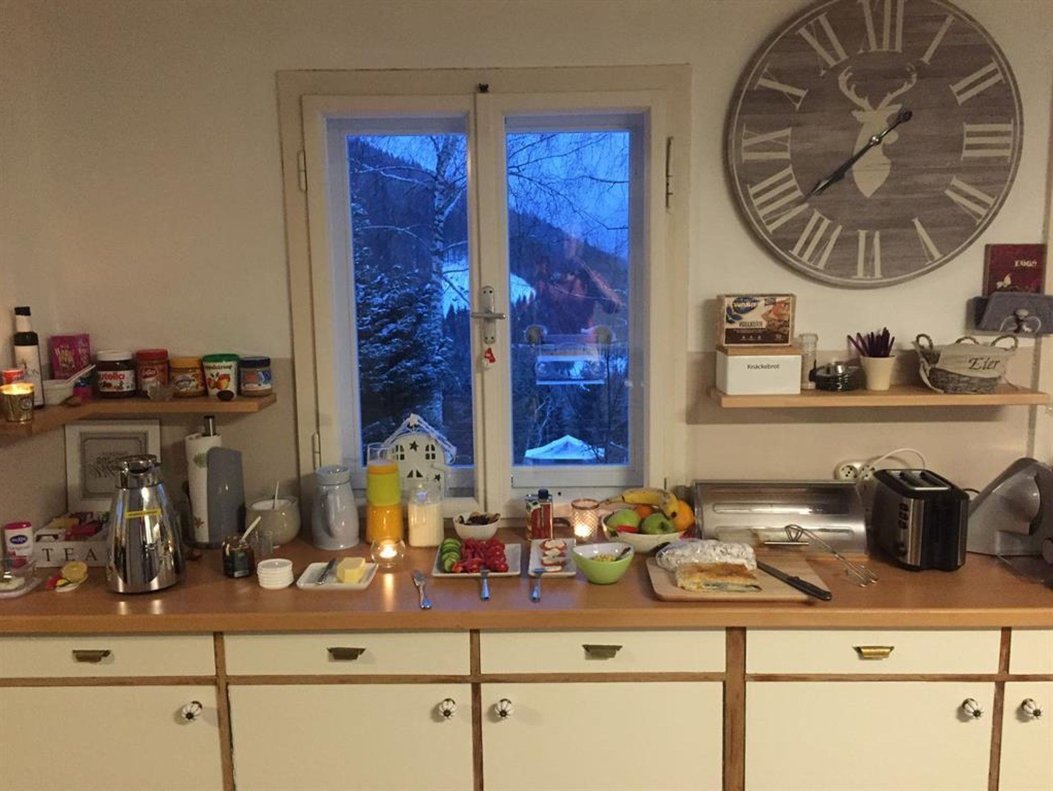 Starten Sie ihren Tag am vielfältigen Frühstücksbuffet mit vielen frischen Produkten im kleinen und gemütlichen Frühstücksraum.
