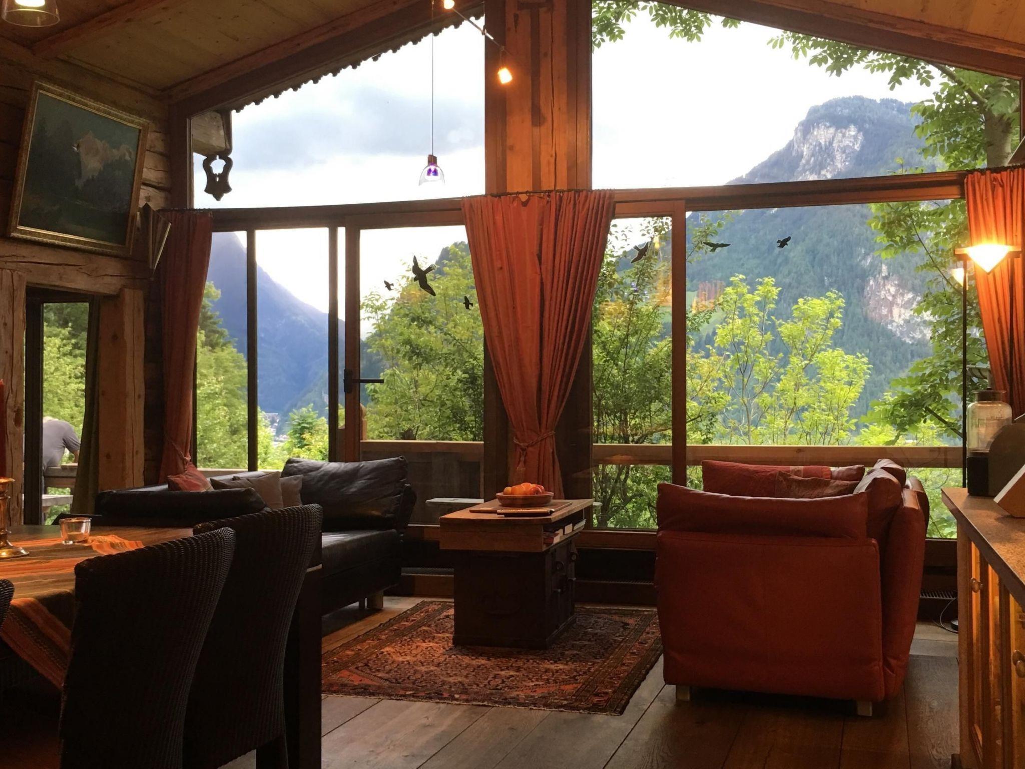 Die großzügige Fensterfront ermöglicht einen tollen Blick ins Tal sowie eine sympathische Beleuchtung. Um einmal Frische zu tanken kann diese Fensterfront auch geöffnet werden - draußen befindet sich eine Terrasse mit Glasfront, Tisch und Sitzplätzen.