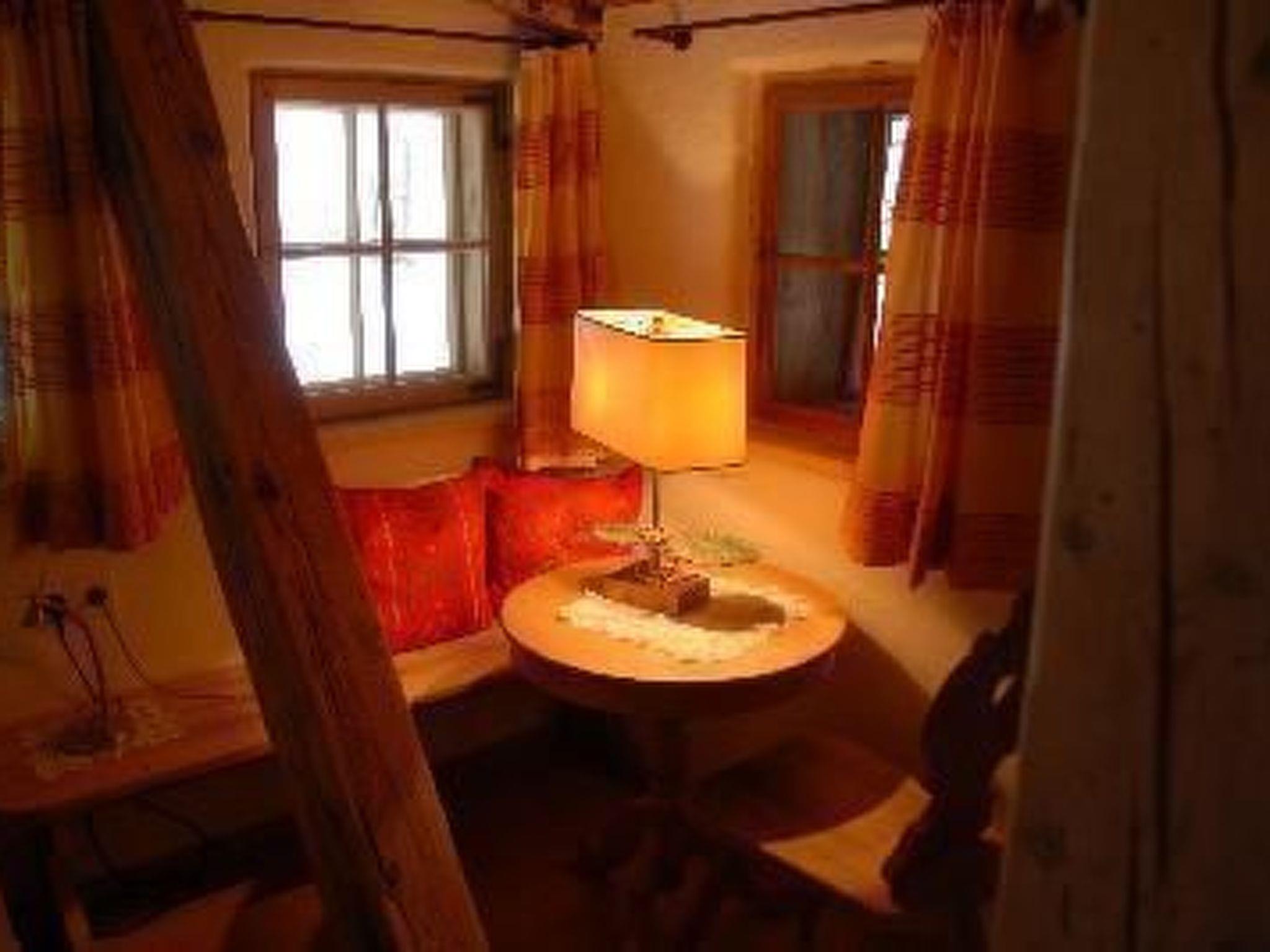 Richtig gemütlich machen kann man es sich auf der roten Ledercouch, während ein großer HD-Plasma-TV mit Sat-Anschluss (inklusive Sky) und eine Beolit 12 von Bang & Olufsen zur Unterhaltung beitragen. Für die gesellige Runde steht ein großer Esstisch zur Verfügung. Der besondere Flair wird durch die große, nach Süden und Norden gerichtete Fensterfront und der umfangreichen, großteils indirekten Beleuchtung (Wohnzimmerbeleuchtung Swarovski) sowie den soliden, teilweise handgefertigten Eigenbaumöbeln aus unbehandelten Naturholz verliehen.