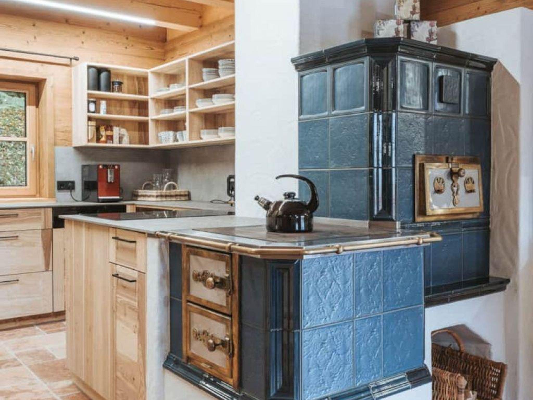 • Küche: Holzofen, Backofen, 4 Induktionsplatten, Geschirrspüler, elektrische Kaffeemaschine, Kühlschrank mit kleinem Gefrierfach, Toaster, Wasserkocher, RIES Kochtöpfe, Geschirr und Waschmaschine