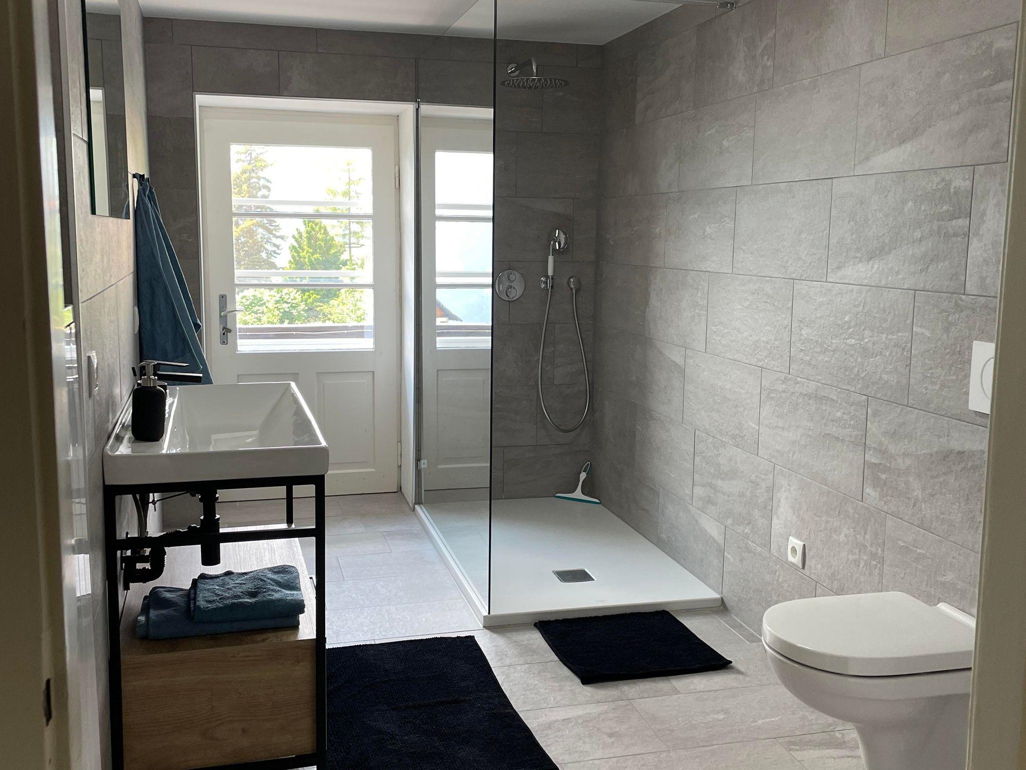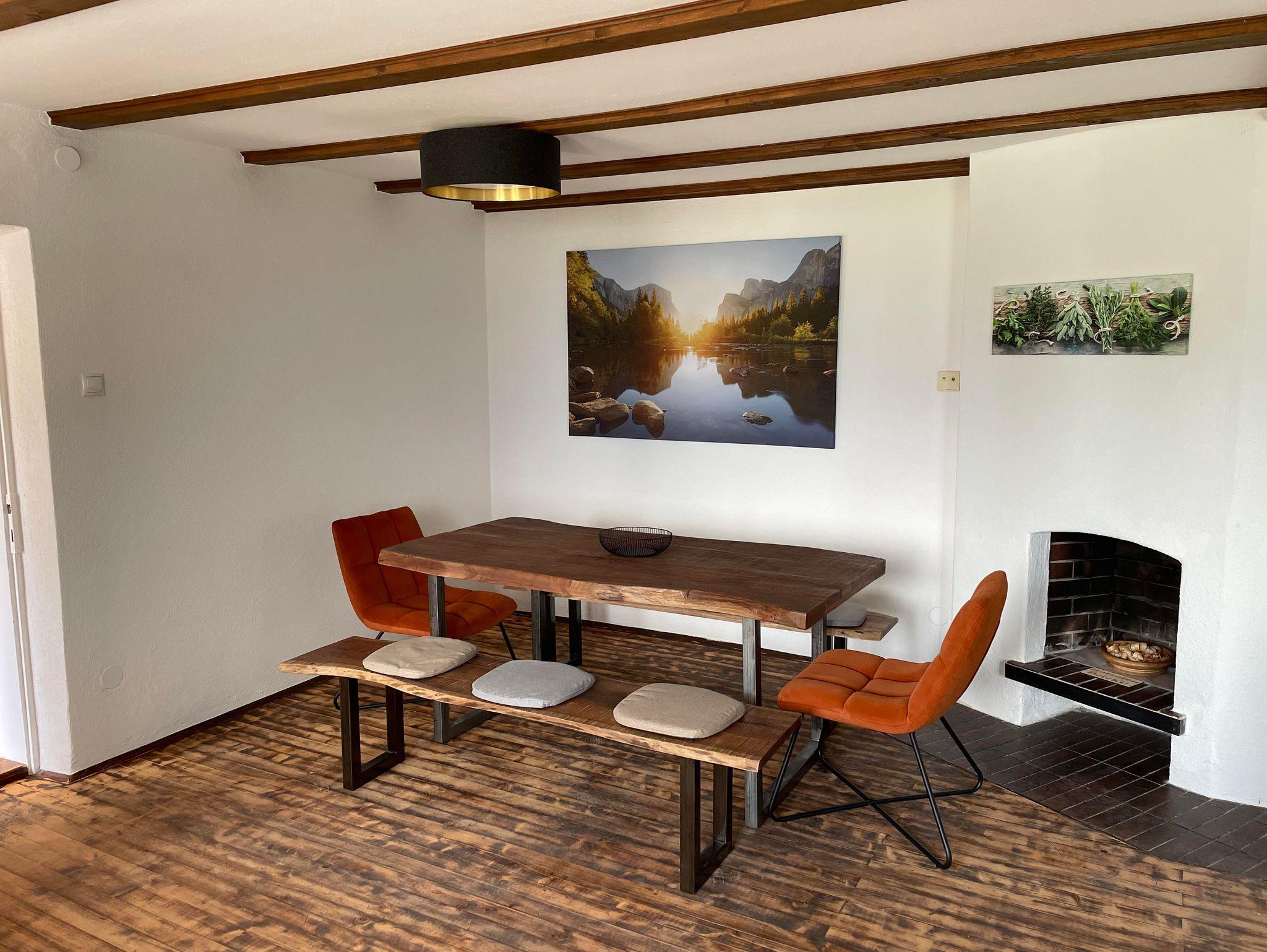 Im offenen Wohnbereich mit großer Fensterfront und Kamin entsteht schnell das Gefühl angekommen zu sein. Vom Balkon oder der Sonnenterrasse aus blickst Du direkt auf die umliegende Bergwelt. Nach einem Tag in der Natur lädt die Terrasse zum Grillen oder einfach zum Durchatmen ein.