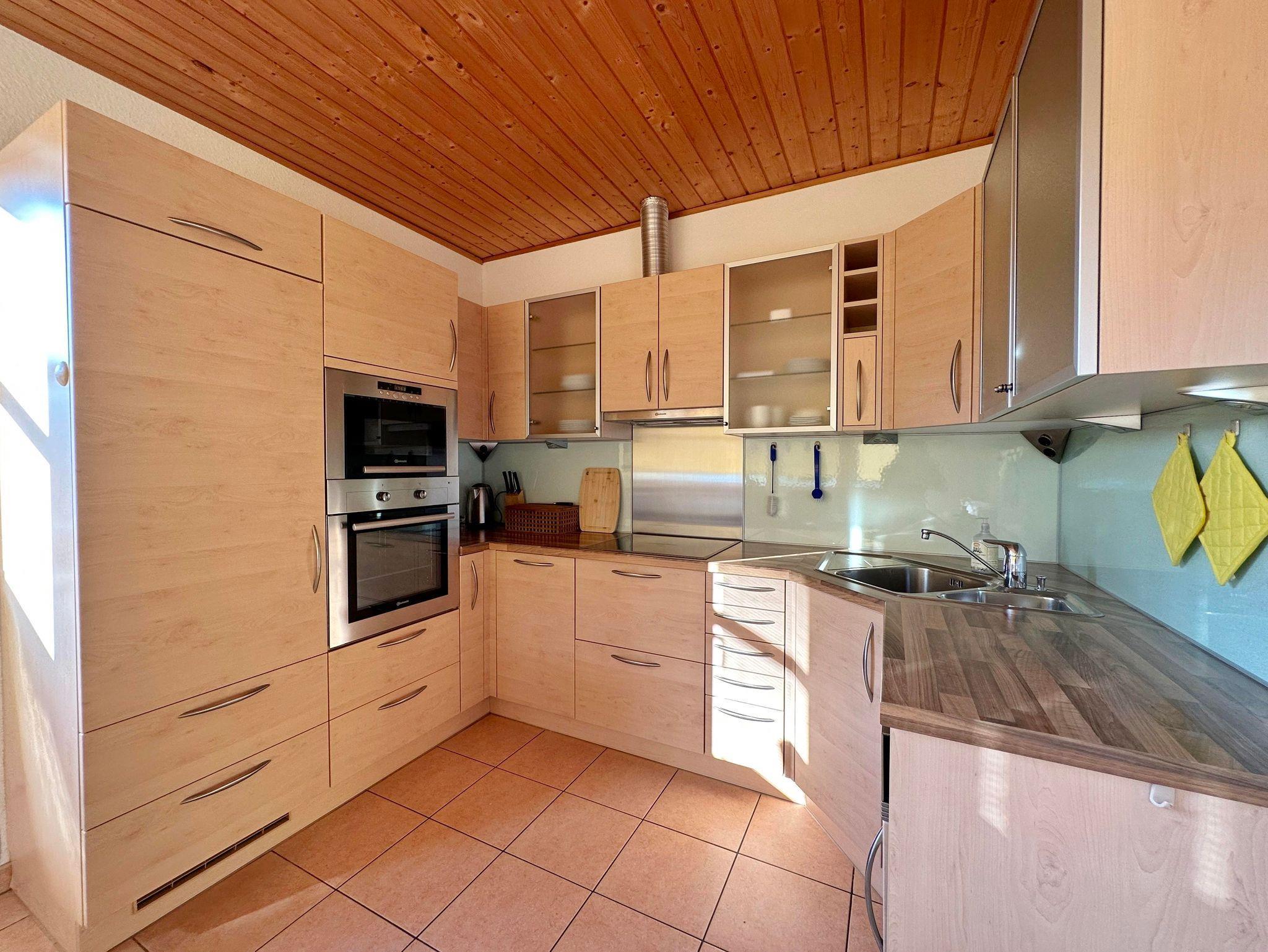Das gemütliche Ferienhaus mit 80 m2 Wohnfläche verfügt über 2 Schlafzimmer (1 großes Doppelbett, 1 Doppelbett und 1 Ausziehsofa), 1 Wohn- Esszimmer (mit Ausziehsofa), 1 vollausgestattete Küche, 1 Badezimmer mit Dusche und Badewanne, 1 separates WC, 1 Yogabereich, 1 Infrarotkabine sowie 1 Garage.