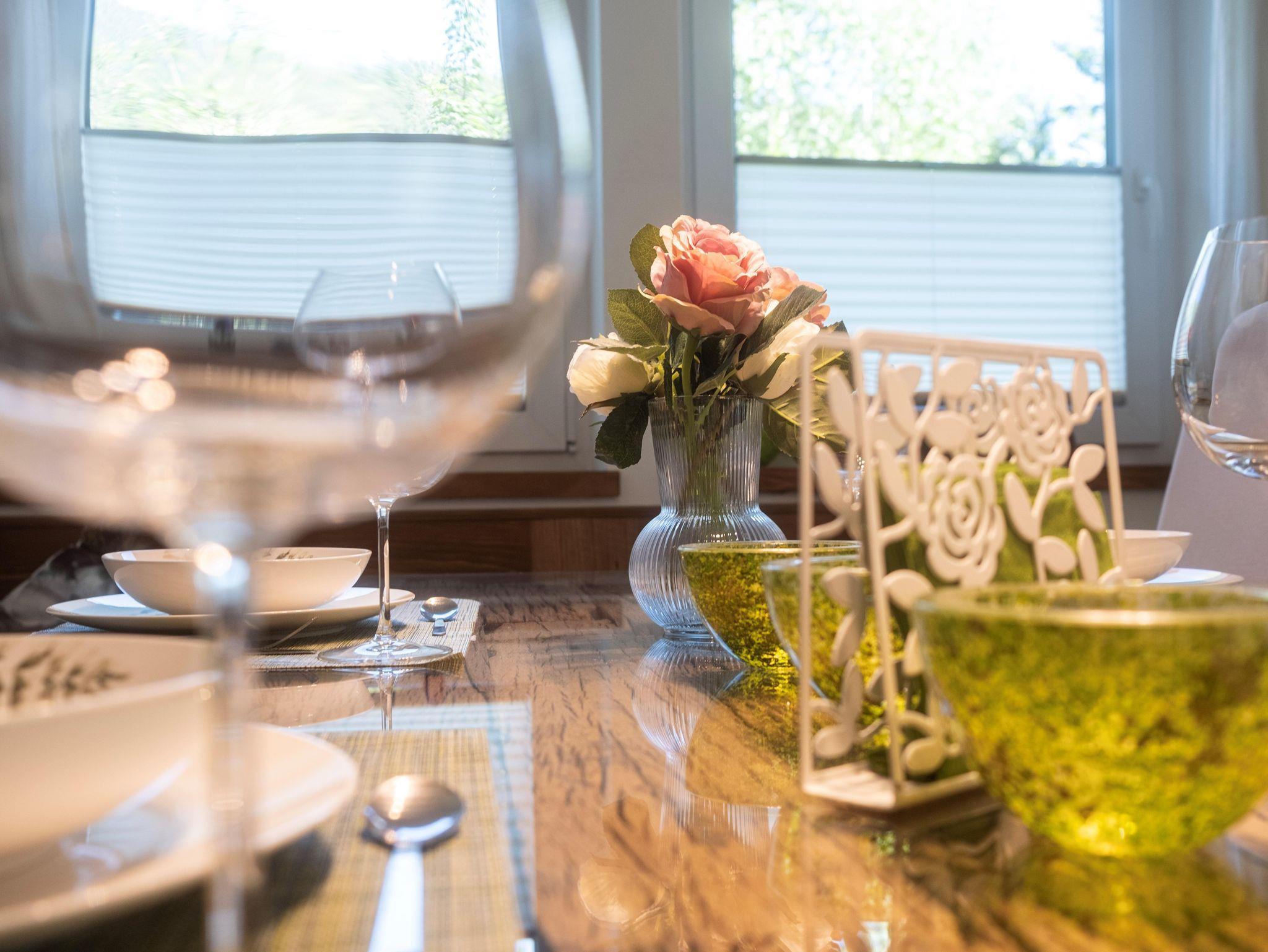 Das Apartment verfügt über 2 Schlafzimmer mit Boxspringbetten, Sat-TV, einer voll ausgestatteten Küche mit Geschirrspüler, Gasherd, Backofen, Kühlschrank mit Gefrierfach und einer Mikrowelle. Die Küche ist in den großen offenen Wohnbereich inkl. Essecke integriert. Ein Holzofen im Wohnbereich rundet die Gemütlichkeit ab. Das Bad ist sehr grosszügig angelegt und besteht aus einer Dusche, Eckbadewanne, Waschtisch, WC sowie einer Waschmaschine. Im Eingangsbereich findet sich noch ein weiteres WC.