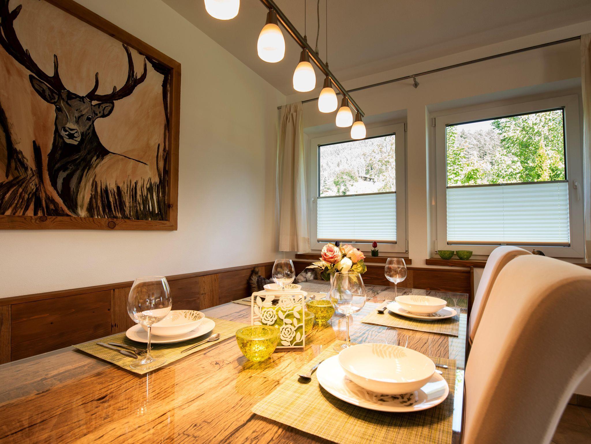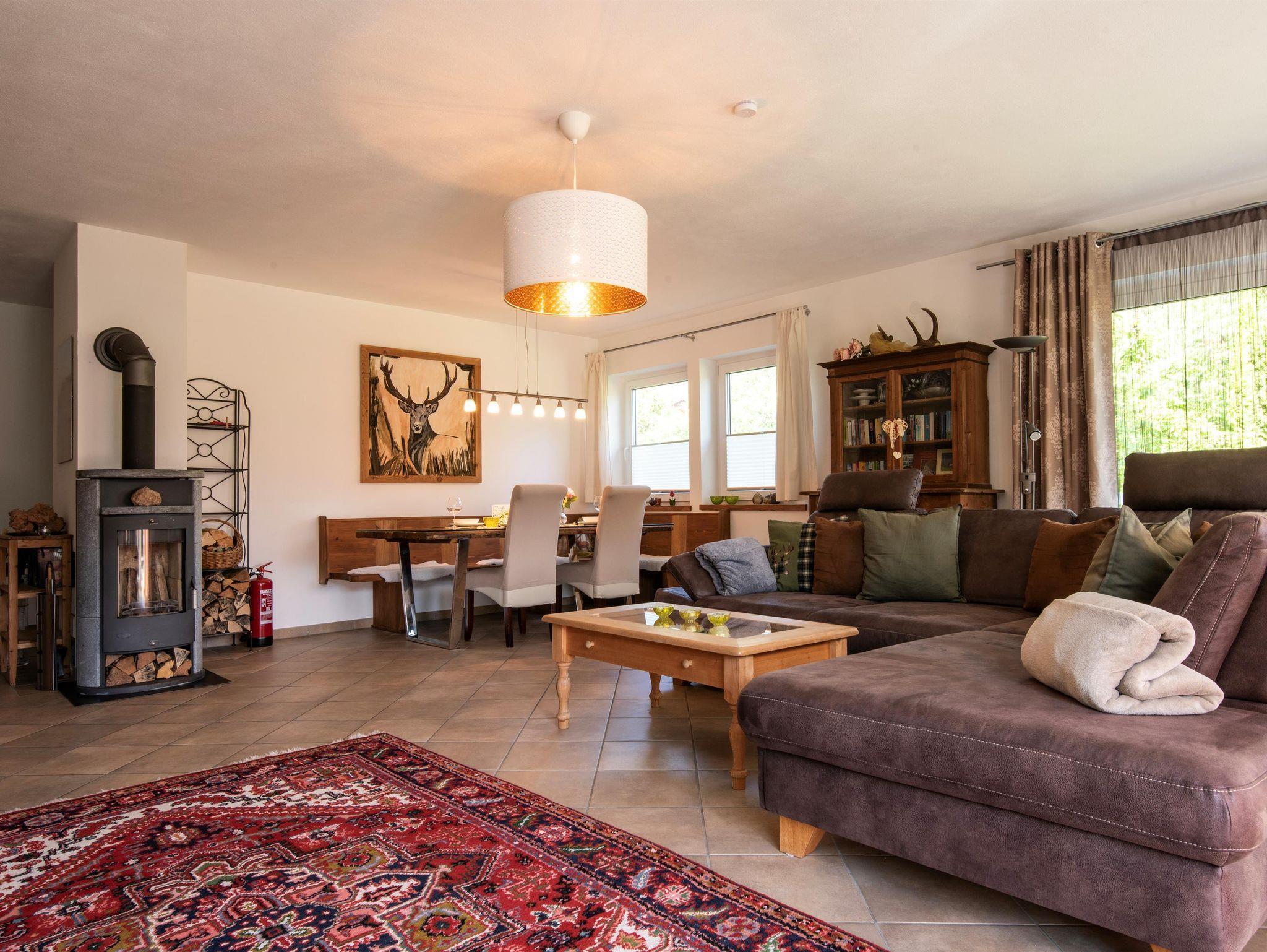 In der Unterkunft ist dies das einzige Apartment, die oberen Stockwerke werden von der Familie selber bewohnt. Die Wohnung, liebevoll im Tiroler Stil eingerichtet, umfasst mit ca. 110 m² den ganzen untersten Stock des Hauses, welche über eine Treppe zu erreichen ist.