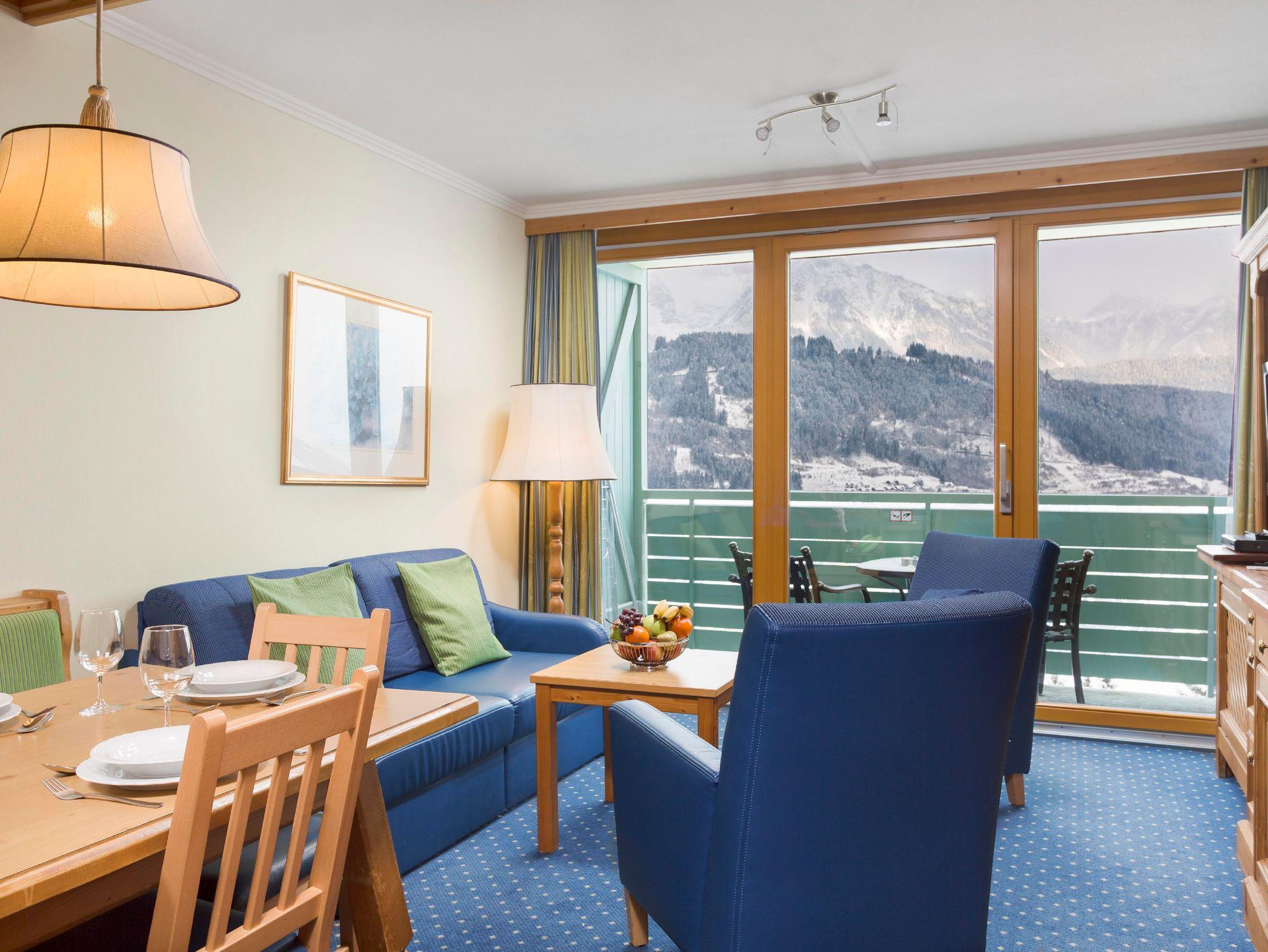 Alle Einheiten sind mit einer Küchenzeile, einem Ess- und einem Wohnbereich ausgestattet. Einige Zimmer auf der Vorderseite des Hotels bieten einen herrlichen Panoramablick auf die Berge.