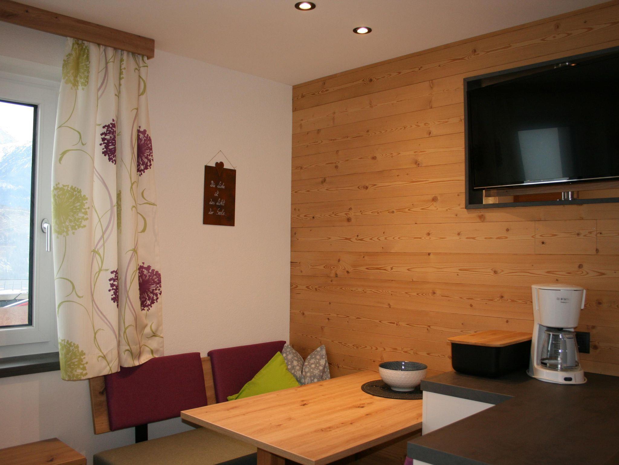 Das Appartement Vogelnest ist etwa 25 m² groß und für 2 bis 3 Personen geeignet. Ein Gitterbett findet neben dem Elternbett seinen Platz.