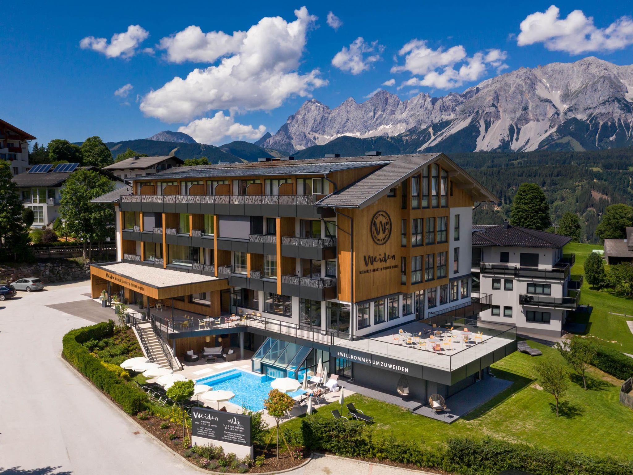 Das Hotel WEIDEN mit Wohnzimmerfeeling und innovativem Konzept hat erstklassige Lage am Hochplateau Rohrmoos oberhalb von Schladming. Im Skiurlaub direkt neben der Skipiste, im Sommerurlaub mitten in der Wanderregion Schladming Dachstein.