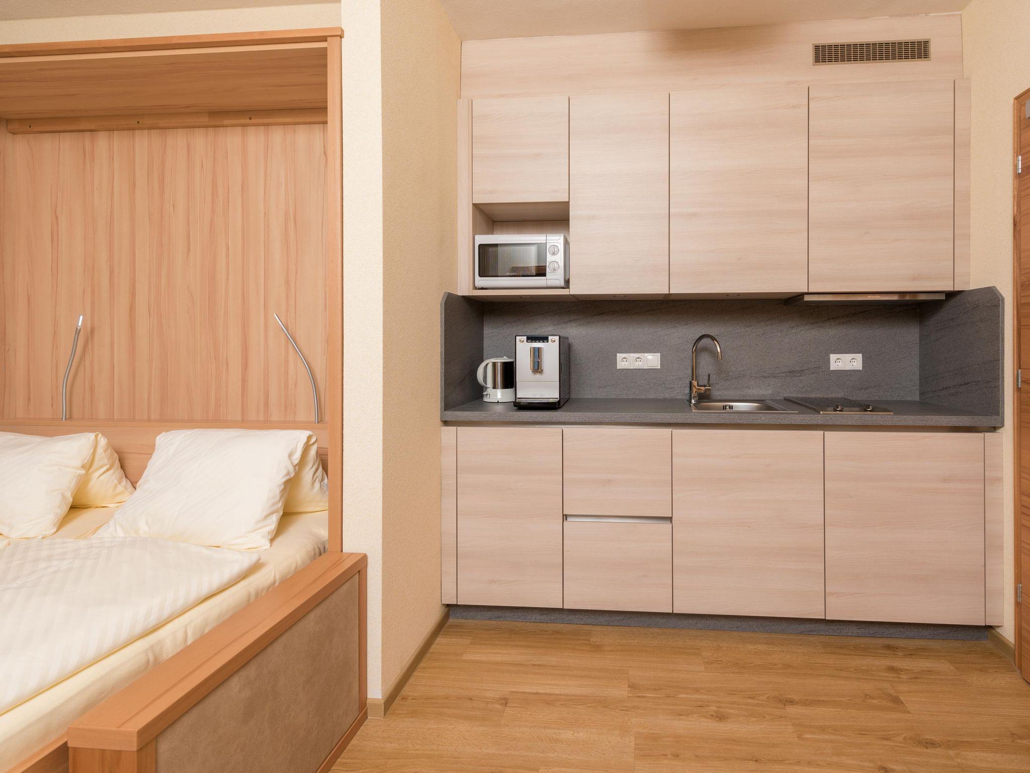 Im Frühjahr 2016 komplett saniert!!! Schlafzimmer: * Handgefertigte Zirbenholzmöbeln * Doppelbett mit hochwertigen QUL-zertifizierten Relax-Matratzen * Kabel-TV * Balkon mit Bergblick und Nachmittags-Sonne Badezimmer: * Waschtisch * Dusche * WC * Handtuchtrockner * Leistungsstarker Fön Wohnraum: * Gemütliche Sitzecke mit Tisch * Kabel-TV * Couch (kann in ein Stockbett verwandelt werden) Küche: * 2 Herdplatten * Mikrowelle * Kühlschrank * Kaffeevollautomat * Geschirrspüler * Wasserkocher * Geschirr und Geschirrtücher Gesamte Suite: * Fußbodenheizung * gratis WiFi