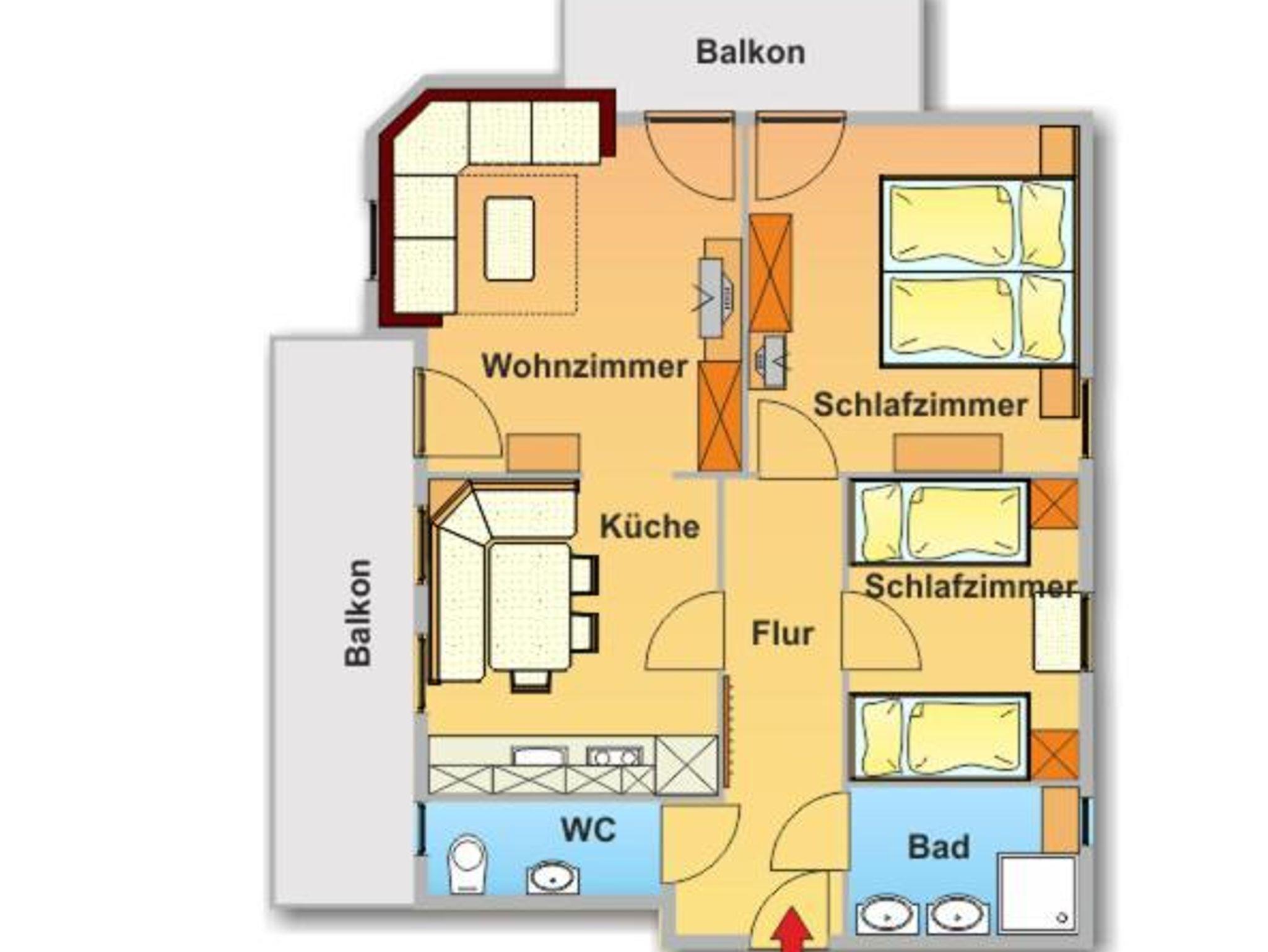 Appartement mit zwei getrennten Schlafzimmern, Küche, Wohnzimmer, 2 x Balkon, DU und WC getrennt, 2 mal Kabel-TV,Zimmersafe,